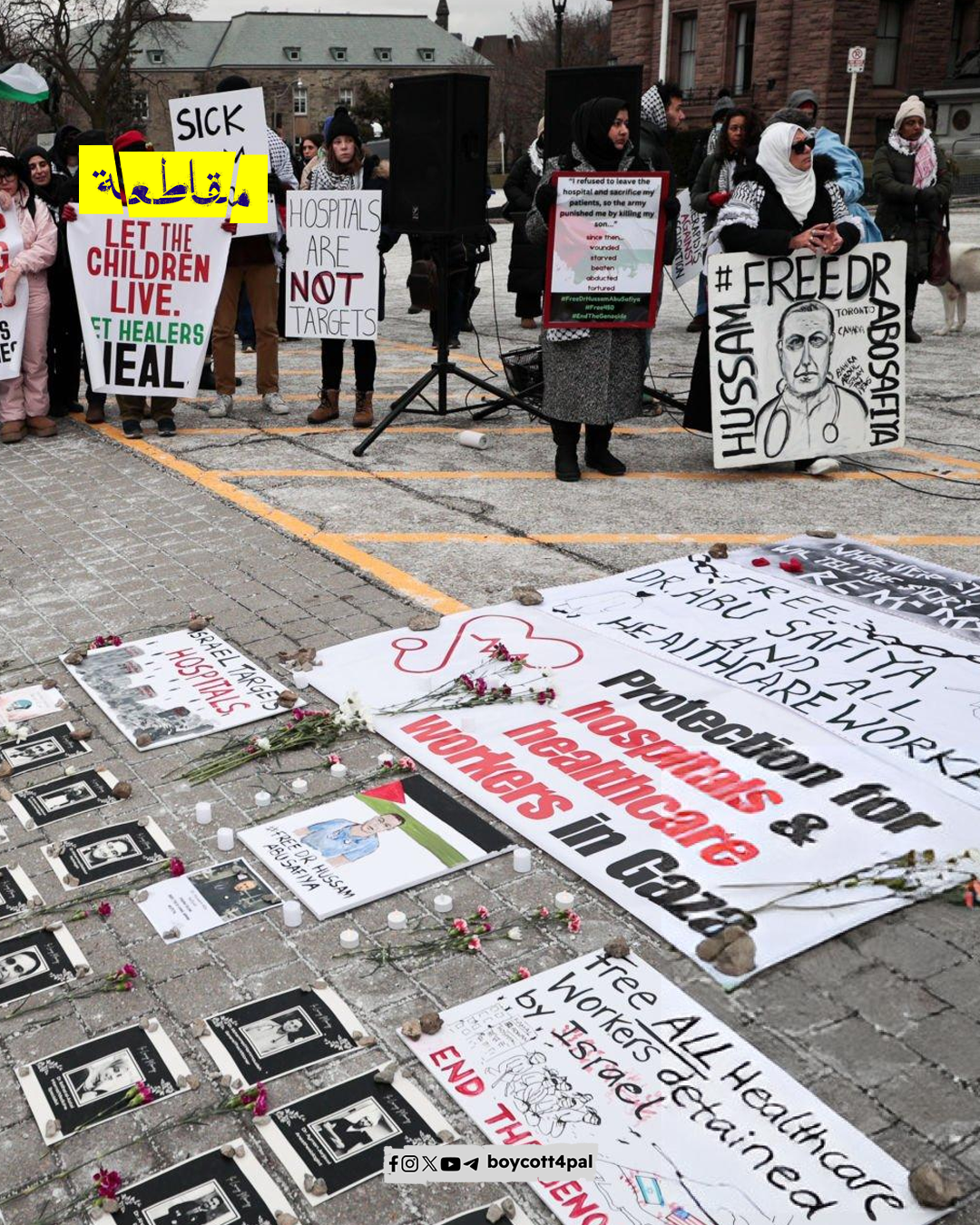 تجمع متظاهرون مؤيدون للفلسطينيين أمس الأحد خارج الجمعية التشريعية في أونتاريو بكندا ، للاحتجاج على الهجمات الإسرائيلية في غزة والمطالبة بالإفراج عن مدير مستشفى كمال عدوان، الدكتور حسام أبو صفية وجميع العاملين في القطاع الصحي. وحمل المتظاهرون لافتات كتب عليها "الصحة لغزة، أوقفوا الإبادة الجماعية" و"الرعاية الصحية ليست جريمة". كما طالبوا بفرض حظر على الأسلحة وقطع العلاقات الدبلوماسية مع الاحتلال.