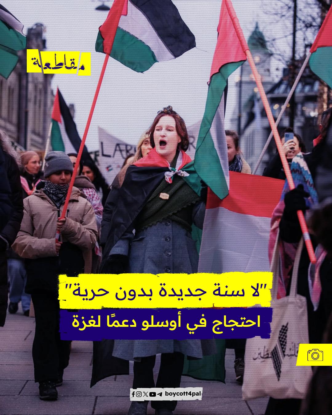 احتشد أنصار فلسطين بنهاية العام في العاصمة النرويجية أوسلو، دعمًا للفلسطينيين ورفضًا لاستمرار مجازر الاحتلال المروعة بحق الفلسطينيين بقطاع غزة، وطالب المتظاهرون بفلسطين حرة ووقف دعم كيان الاحتلال الإسرائيلي، ورفع المحتجون أعلام فلسطين ولافتات مناهضة للحرب.
