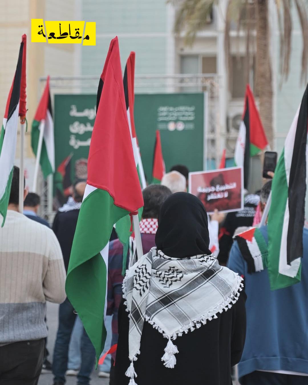 وأكد المشاركون خلال الاعتصام أن التطبيع يشكّل غطاءً لجرائم الاحتلال بحق الشعب الفلسطيني، ويُسهم في شرعنة جرائمه القائمة على القتل والتهجير والحصار، مطالبين بوقف كافة أشكال التعاون السياسي والاقتصادي والأمني مع الاحتلال، ومشدّدين على أن الموقف الشعبي البحريني ما زال رافضًا للتطبيع رغم السياسات الرسمية.