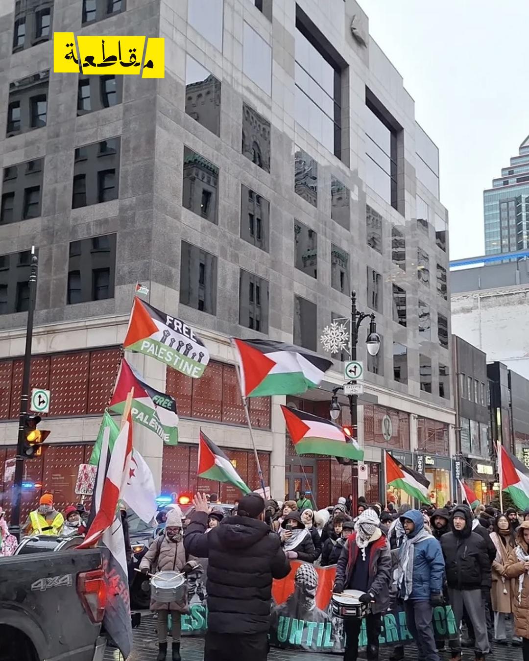 نظّم نشطاء داعمون للقضية الفلسطينية من مجموعة Palestine Vivra مظاهرة في مدينة مونتريال الكندية تحت شعار “أنا غزة، لأجل الحياة”، في رسالة تضامنية مع الشعب الفلسطيني في قطاع غزة.