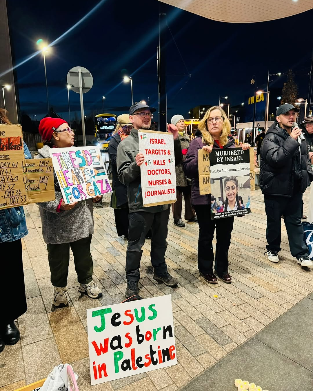 وفي تامسايد، نظّمت حركة التضامن الفلسطيني احتجاجًا خاصًا لدعم فيلتون 24، حيث شاركت مجموعة من النشطاء المحليين لدعم غزة والمعتقلين في يومهم الـ 65 للإضراب عن الطعام، والذين احتجزوا بعد استهداف مصنع “إلبيت” الإسرائيلي للسلاح.
