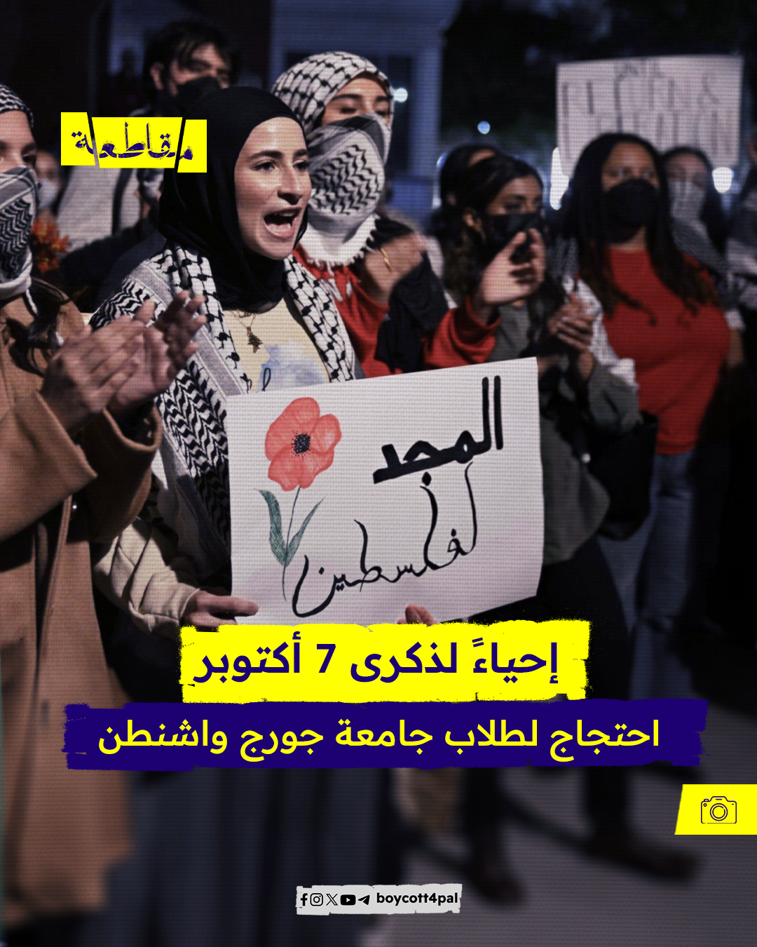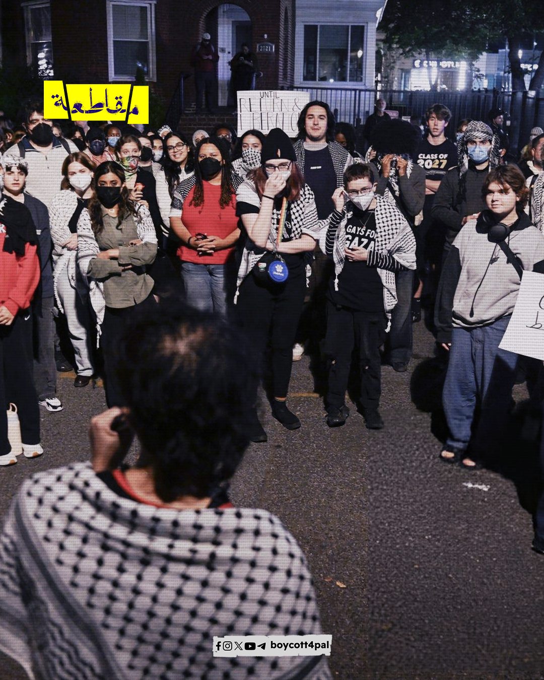 نظمت مجموعة من الطلاب في جامعة جورج واشنطن احتجاجًا يوم الاثنين لإحياء الذكرى الأولى من 7 أكتوبر. شهدت الفعالية مشاركة واسعة من الطلاب الذين عبّروا عن تضامنهم مع الشعب الفلسطيني واستنكارهم للعنف المستمر في القطاع. ارتدى المحتجون الكوفية الفلسطينية ورددوا هتافات تدعو إلى إنهاء الاحتلال الإسرائيلي والاعتداءات على غزة. يأتي هذا الاحتجاج في إطار سلسلة من الأنشطة الطلابية حول العالم، التي تهدف إلى لفت الانتباه إلى الوضع الإنساني المتدهور في فلسطين والمطالبة بوقف الدعم العسكري للاحتلال.