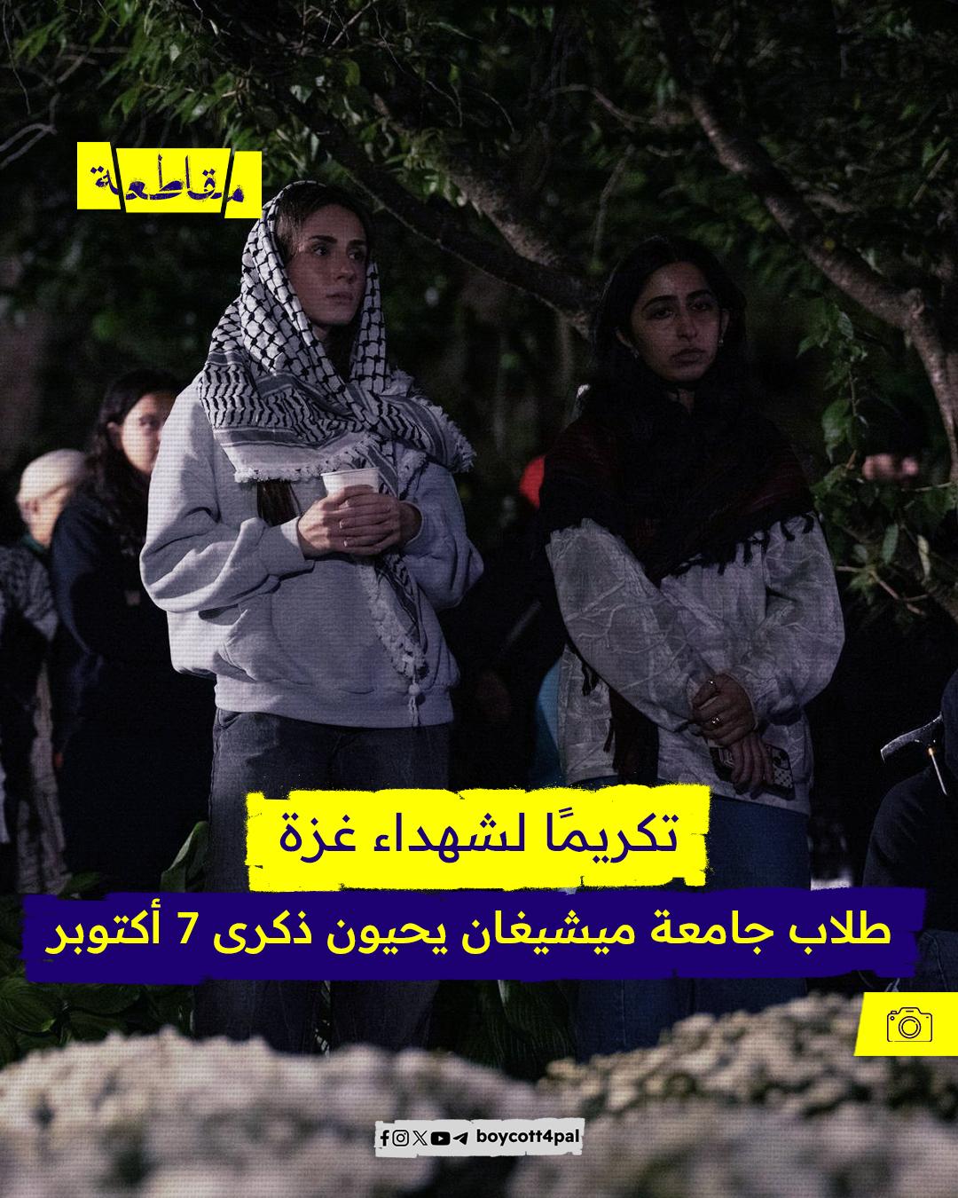 تجمع الطلاب والمؤيدون لفلسطين في برج بومونت بجامعة ولاية ميشيغان مساء الاثنين لإحياء ذكرى مرور عام على طوفان الأقصى. الحدث، الذي نظمته مجموعة "طلاب جامعة ولاية ميشيغان من أجل العدالة في فلسطين" (SJP)، شهد حضور أكثر من 100 طالب، حيث وضعوا الزهور وأقاموا صلوات لتذكر أكثر من 40 ألف شهيد في غزة. وقد دعا المشاركون الجامعة إلى سحب استثماراتها من الاحتلال الإسرائيلي، مع التأكيد على ضرورة اتخاذ إجراءات فعلية لدعم حقوق الفلسطينيين.