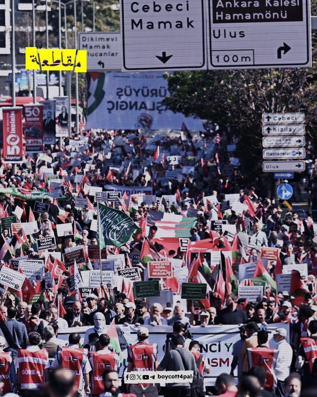 خرج الآلاف من المتظاهرين في العاصمة التركية أنقرة في مظاهرة حاشدة تضامنًا مع الشعب الفلسطيني مع اقتراب الذكرى الأولى للهجمات الإسرائيلية على غزة. رفع المتظاهرون الأعلام الفلسطينية ولافتات تدين الاحتلال الإسرائيلي، داعين إلى إنهاء العدوان المستمر والإبادة الجماعية على غزة.