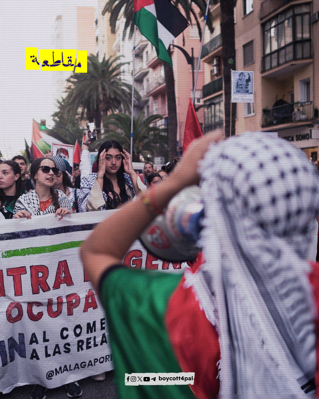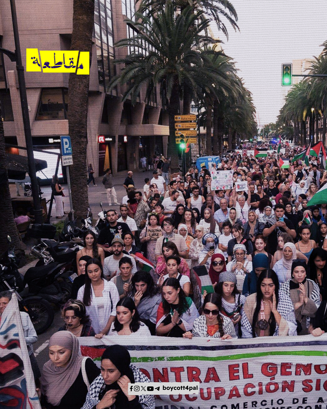 تجمع المتظاهرون في مدينة مالقة الإسبانية ضمن يوم وطني للعمل والإضراب العام تضامنًا مع فلسطين. ورفع المشاركون لافتات كبيرة خلال المظاهرة التي جرت في وسط المدينة، حيث انضمت جماعات وحركات اجتماعية داعمة لحقوق الشعب الفلسطيني. عبّر المتظاهرون عن احتجاجهم ضد الإبادة الجماعية وطالبوا بإنهاء نظام الفصل العنصري الإسرائيلي.