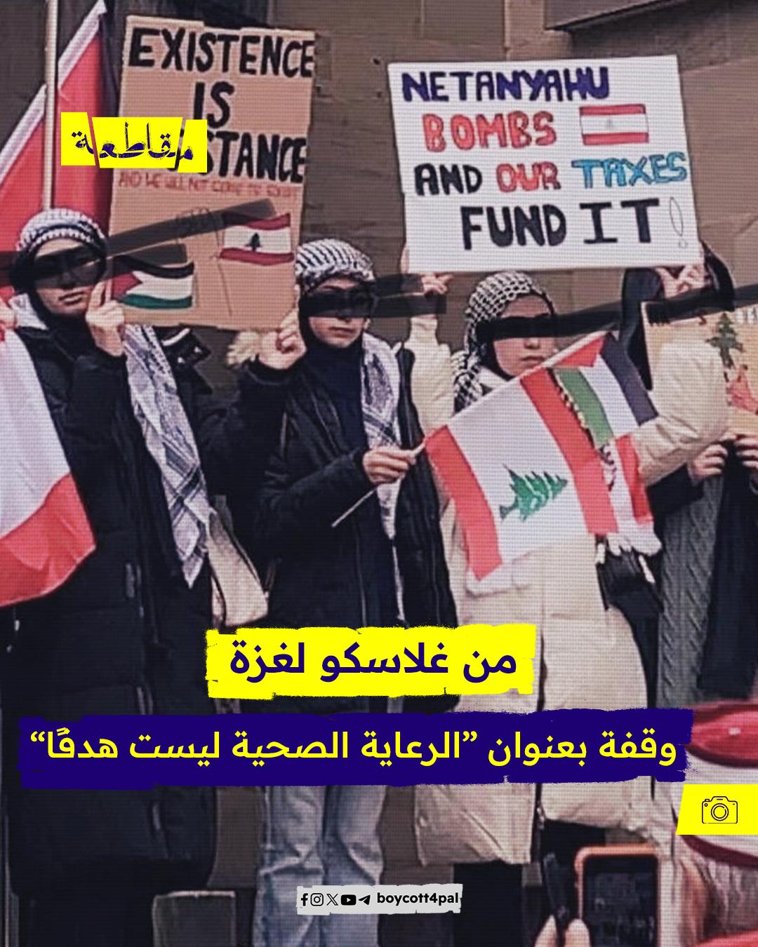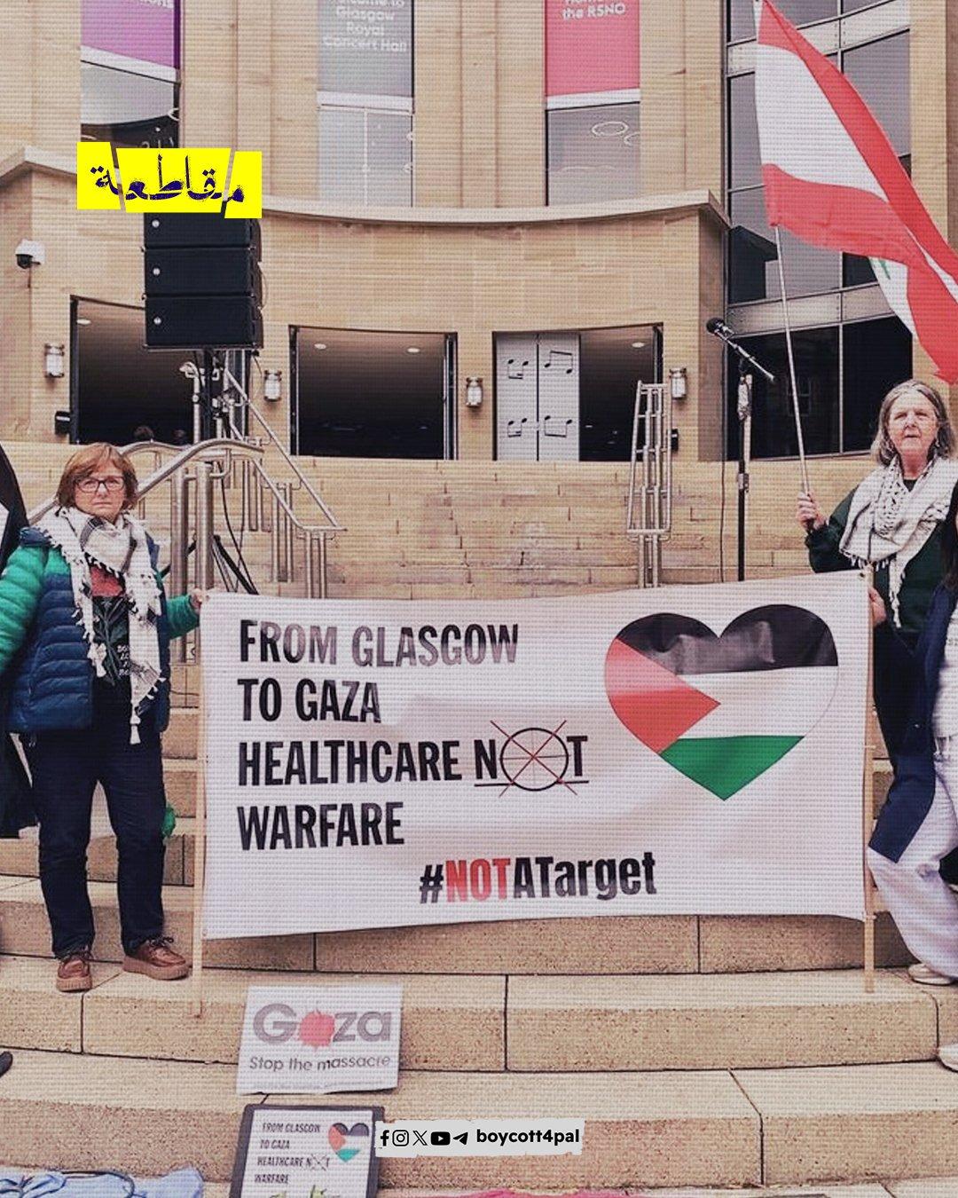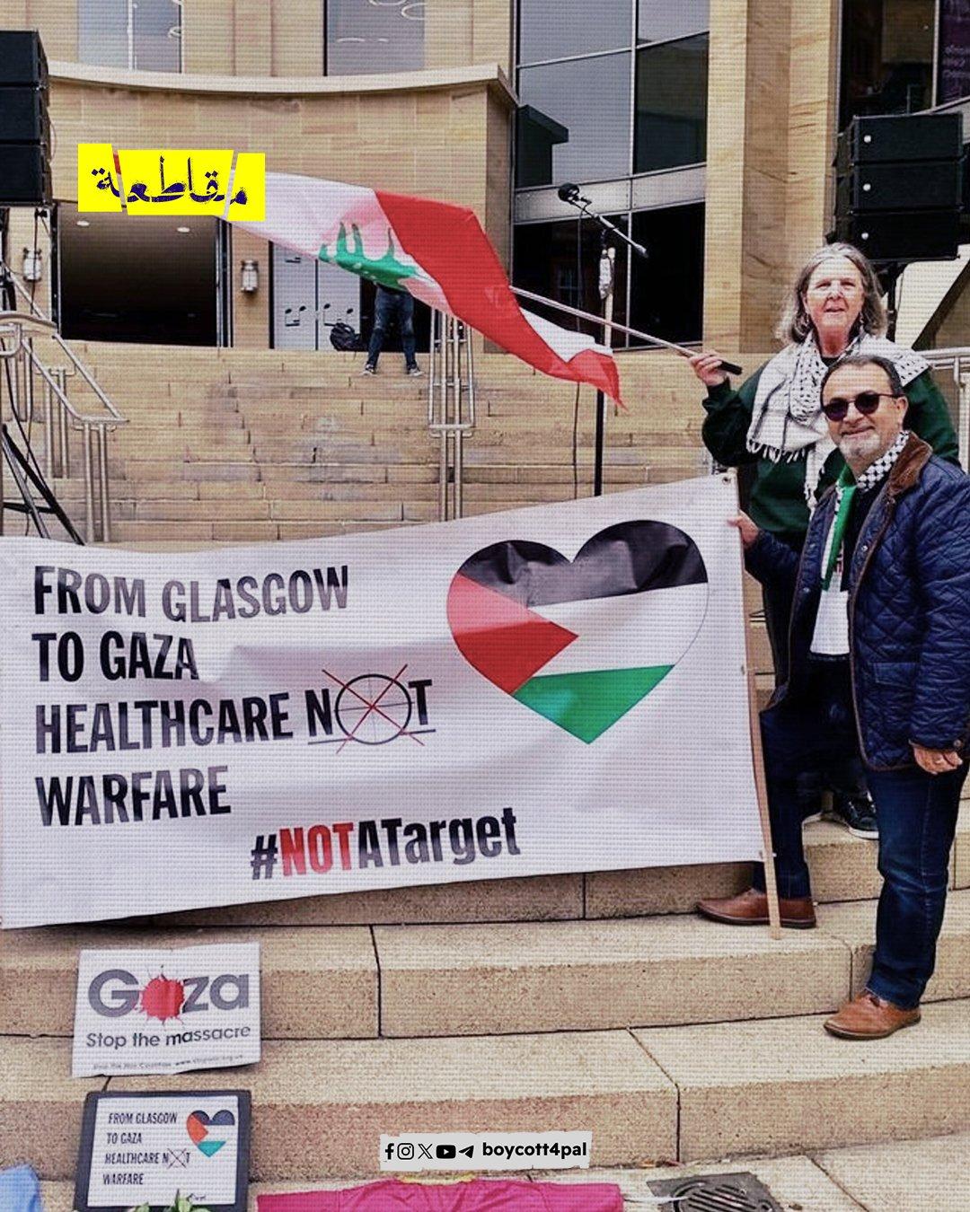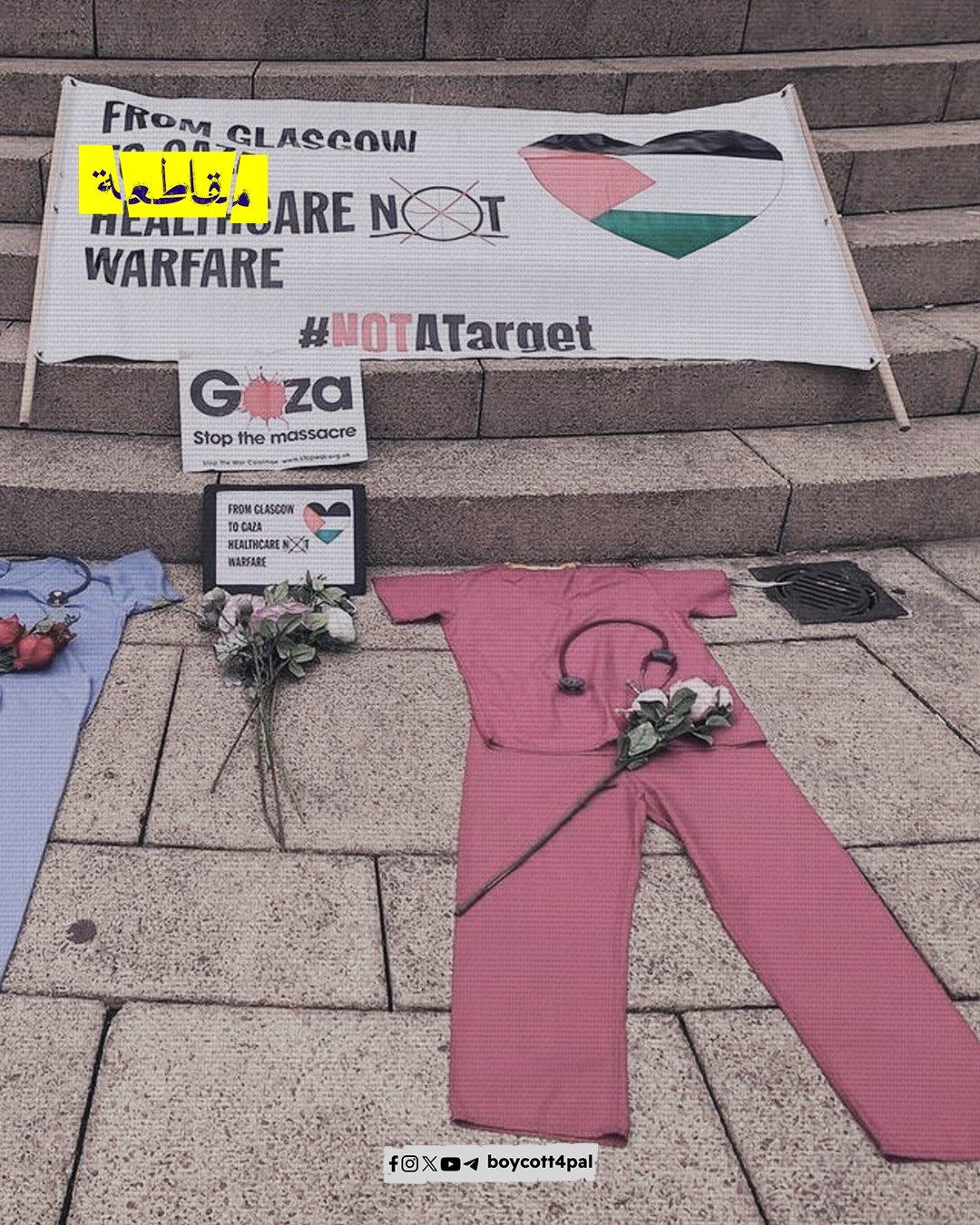 تظاهر عاملون صحيون ومتضامنون آخرون في غلاسكو الأسكتلندية تنديدًا باستهداف العاملين في مجال الرعاية الطبية في غزة وبيروت أيضًا، كما طالبو بوقف الإبادة الجارية في غزة. وحمل المشاركون الأعلام الفلسطينية واللبنانية ورفعوا لافتات من قبيل “أوقفوا الإبادة” و”ليسوا هدفًا” في إشارة للمنظومة الطبية المستهدفة من قبل الاحتلال.
