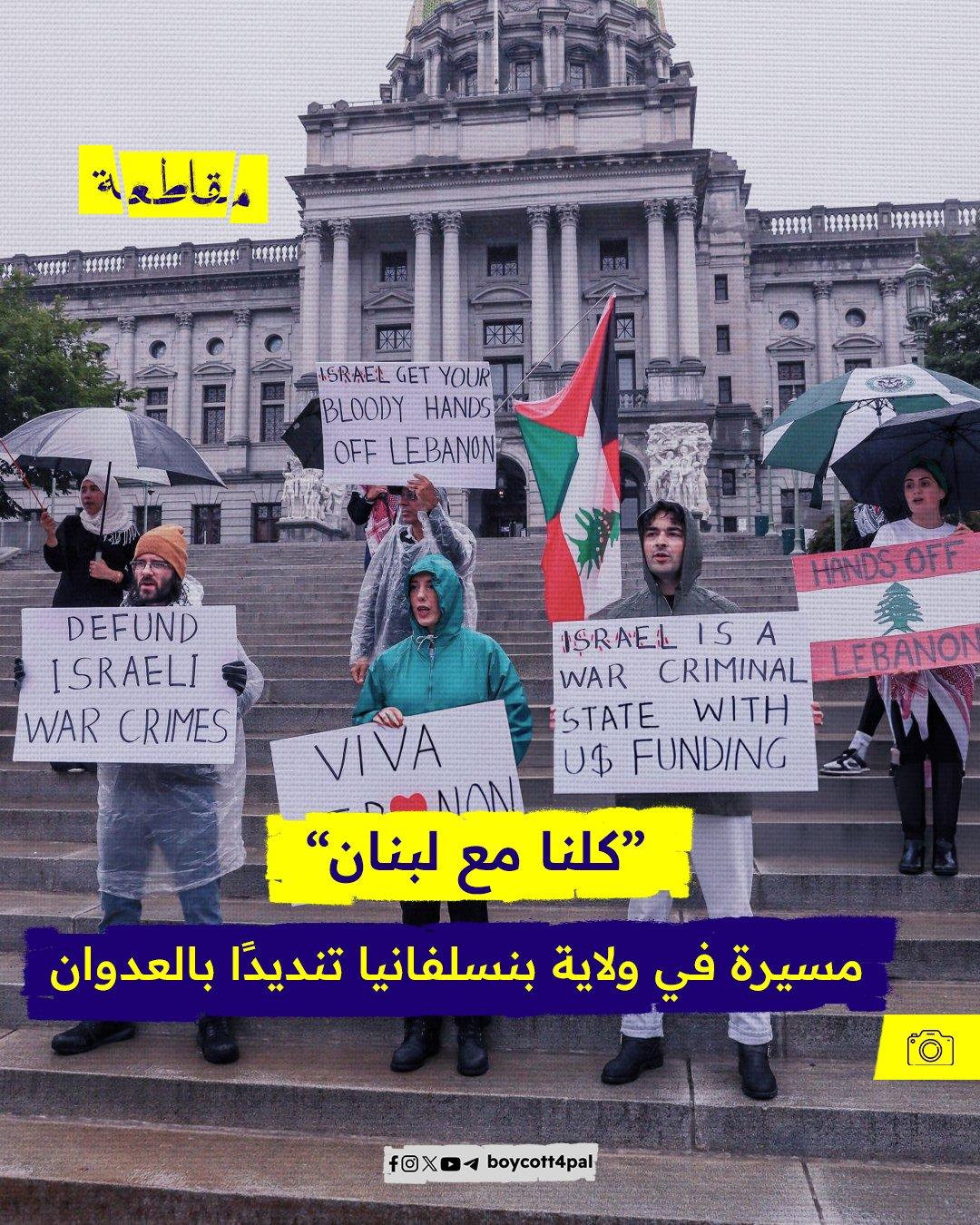 نظم متظاهرون في هاريسبرج، بنسلفانيا، مسيرة تحت شعار "كلنا مع لبنان" يوم الأحد 29 سبتمبر 2024، احتجاجًا على الهجمات الإسرائيلية الأخيرة على لبنان. وقد تجمع المشاركون أمام مبنى الكابيتول، حاملين لافتات تعبر عن تضامنهم مع الشعب اللبناني ودعوات لوقف العدوان الإسرائيلي.