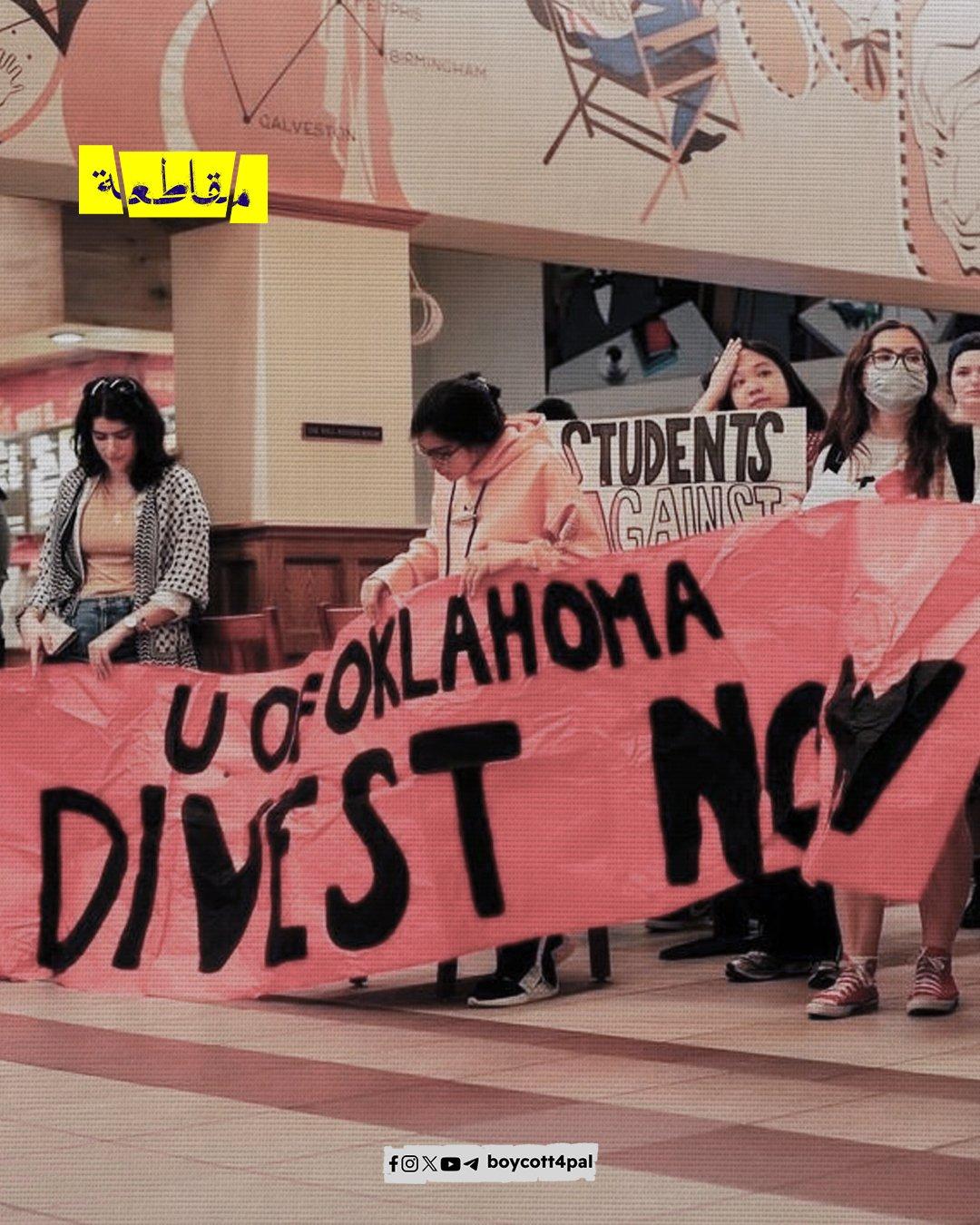 انضمت جمعية "طلاب من أجل العدالة في فلسطين" بجامعة أوكلاهوما إلى الدعوة الوطنية للتحرك ضد الاحتلال الإسرائيلي، حيث نظمت حملة تطالب الجامعة بسحب استثماراتها من الشركات التي تدعم الاحتلال وإنهاء تواطؤها معه.