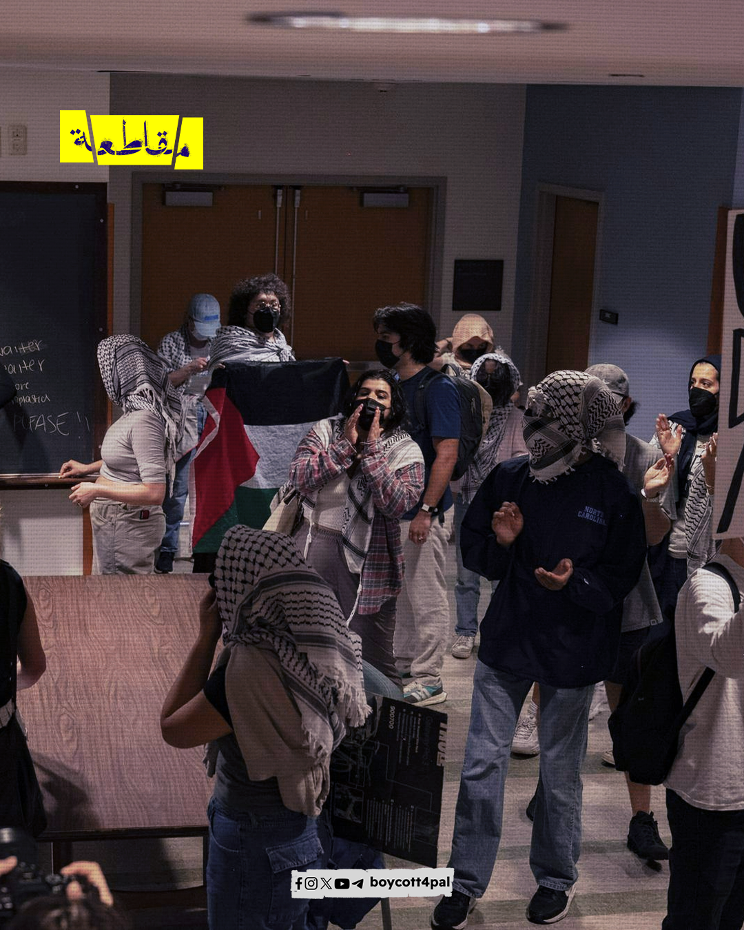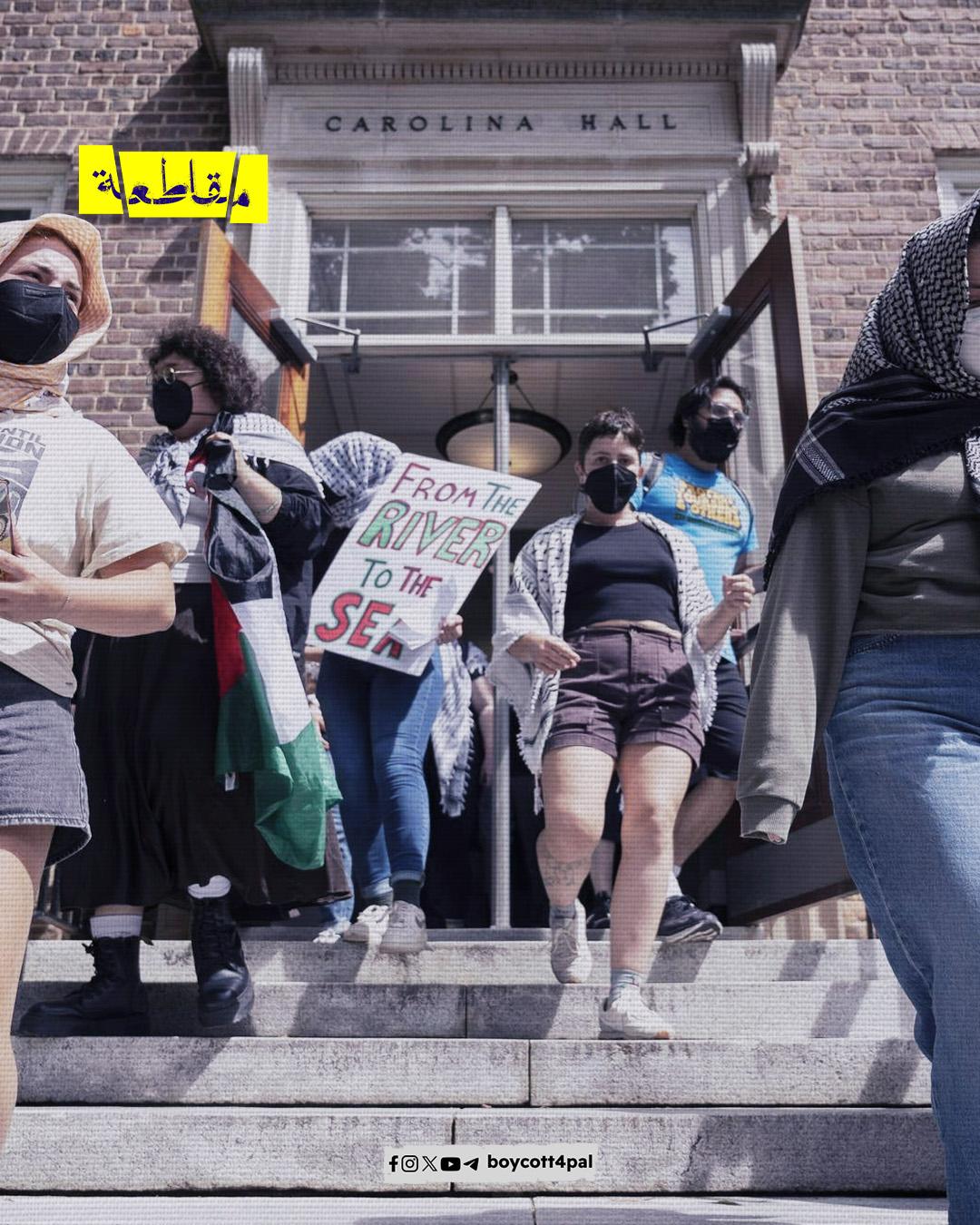 نظمت مجموعة "طلاب من أجل العدالة في فلسطين" فعالية مؤيدة للفلسطينيين، حيث شارك فيها حوالي 200 طالب وموظف. وقام المتظاهرون بالتجول بين مباني جامعة نورث كارولينا، معبرين عن مطالبهم من خلال كتابة شعارات مثل "حرروا غزة" و"إسرائيل دولة إرهابية".