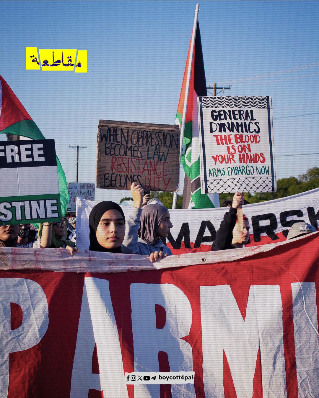 خرج مئات الأشخاص الجمعة في تحرك طارئ ضد شركات متورطة مع الاحتلال في جرائمه مثل شركة جنرال ديناميكس وميرسك، وطالب المتظاهرون بفرض “حظر على الأسلحة وإخراج جميع مصنعي الأسلحة من مدننا!”، مؤكدين أنهم سيواصلون النزول إلى الشوارع ضد آلة الموت الإمبريالية هذه حتى التحرير والعودة.