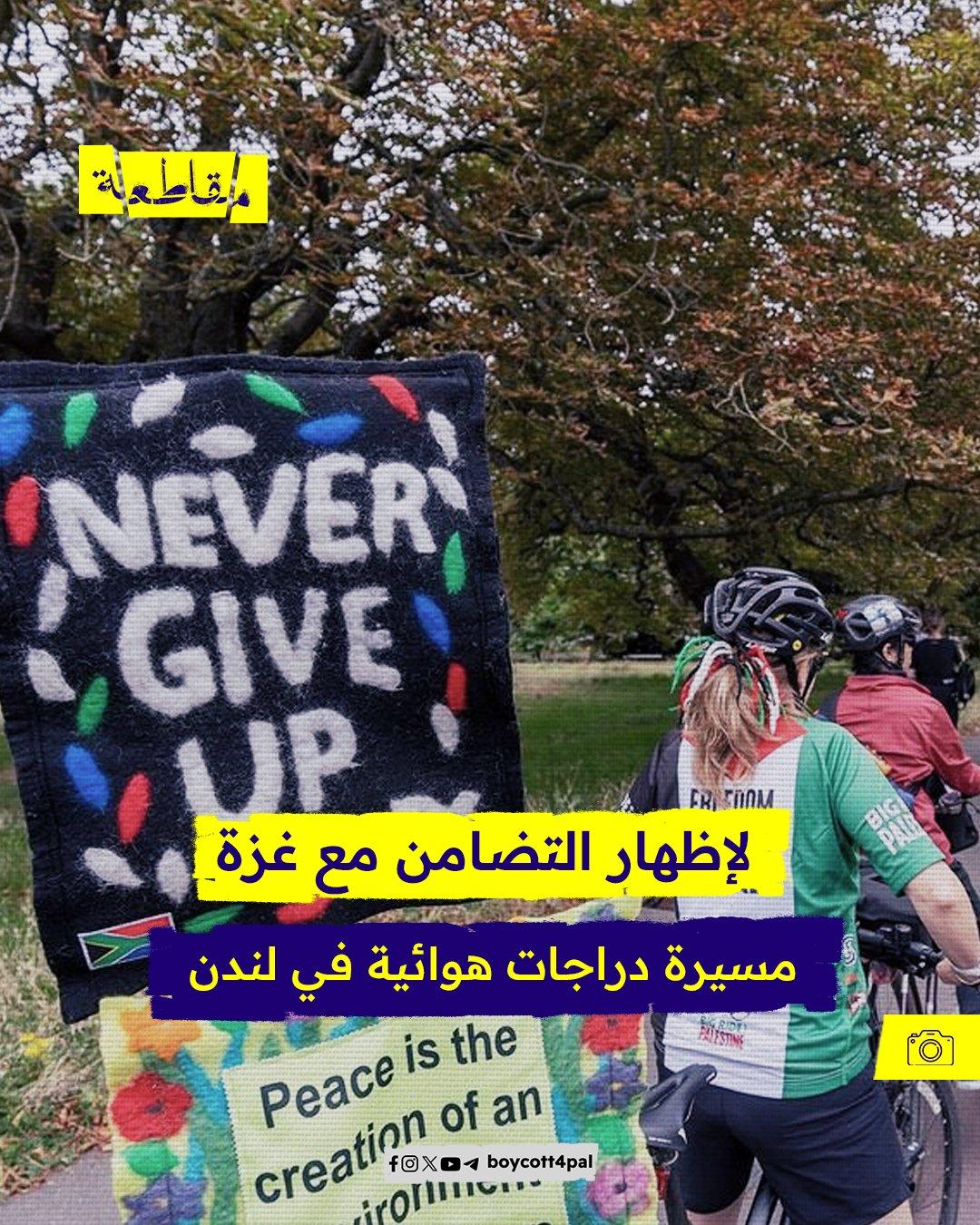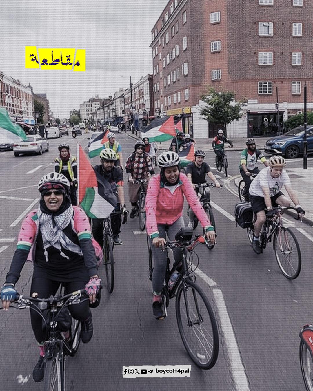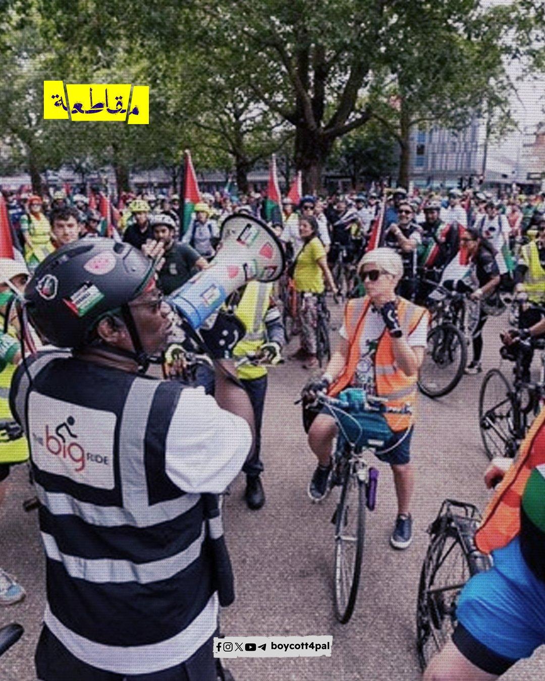 خرج المئات من أنصار فلسطين في لندن إلى الشوارع على دراجاتهم الهوائية لإظهار التضامن مع قطاع غزة، وحملوا خلالها الأعلام الفلسطينية وهتفوا شعارات تطالب بإنهاء الإبادة الجماعية الصهيونية.
