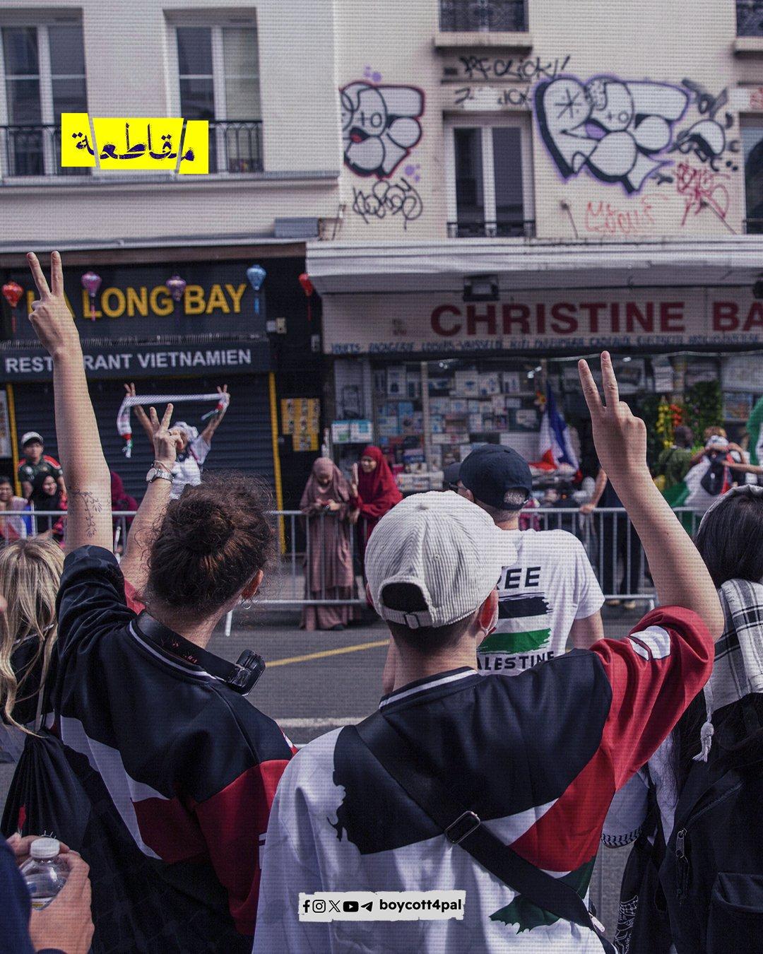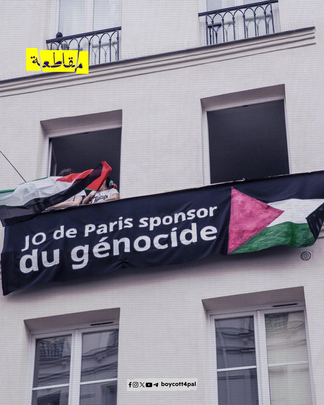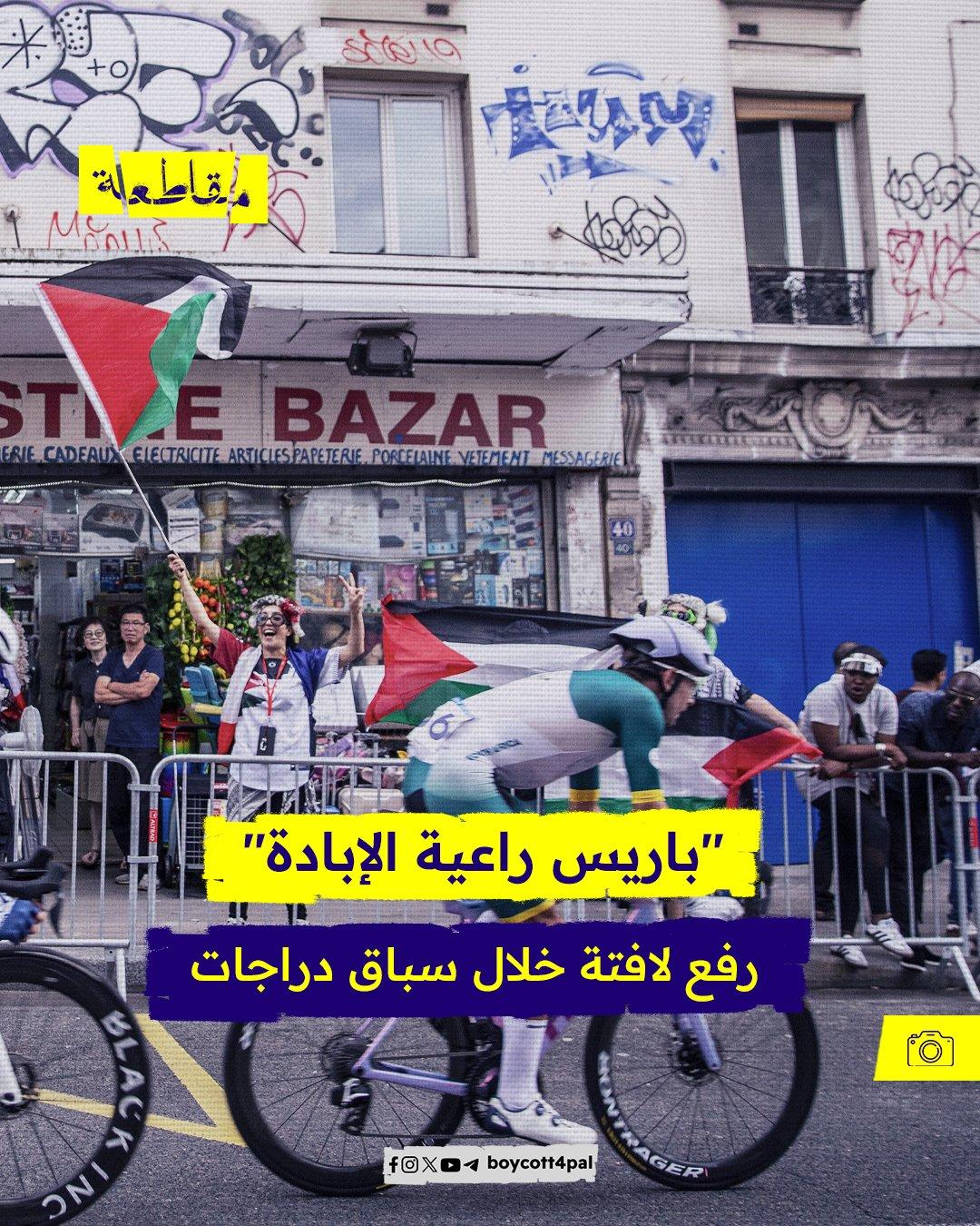 قام متظاهرون مؤيدون لفلسطين بالتلويح بالأعلام الفلسطينية ورفع لافتة كتب عليها "باريس جو، راعية الإبادة الجماعية" على طول مسار سباق دراجات ضمن فعاليات أولمبياد باريس 2024، للتنديد بمشاركة كيان الاحتلال في الألعاب الأولمبية بينما يواصل ذبح الفلسطينيين في قطاع غزة.