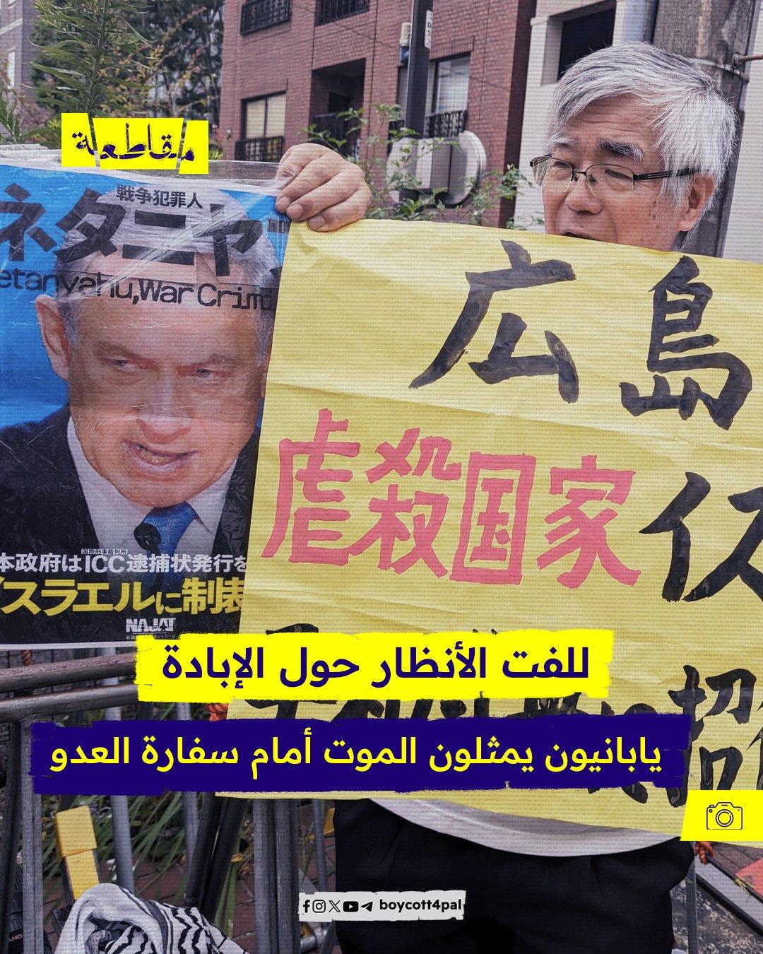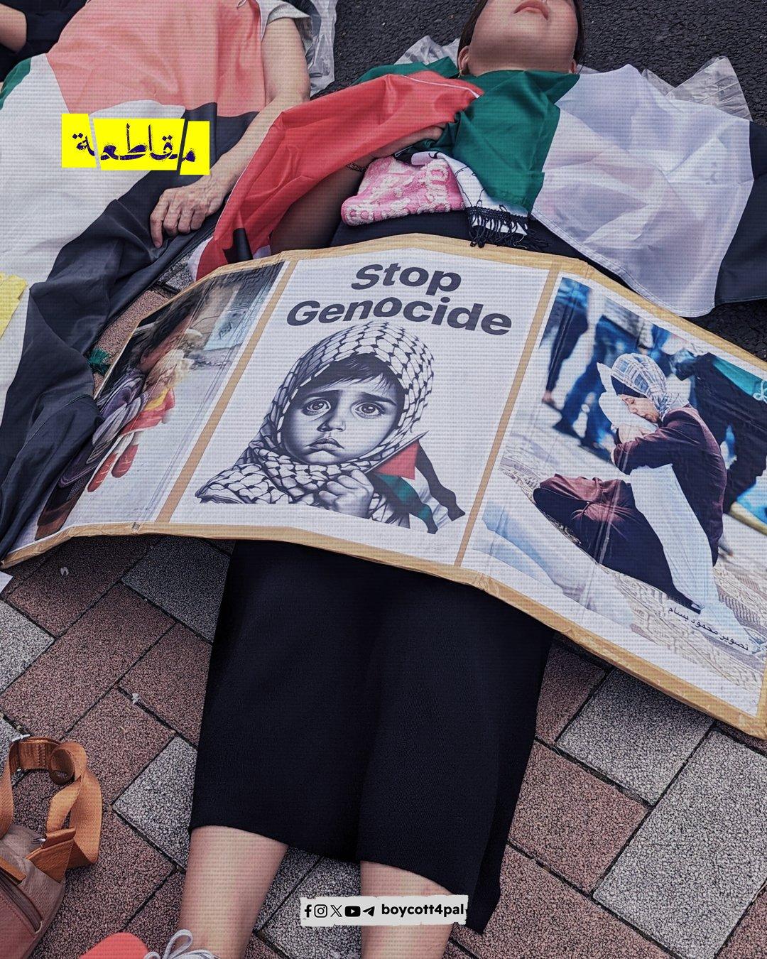 نظم يابانيون مؤيدون لفلسطين فعالية "موت رمزي" أمام السفارة الإسرائيلية احتجاجًا على استدعاء الاحتلال لحضور حفل مؤتمر السلام في هيروشيما وللفت الأنظار حول الإبادة المستمرة في قطاع غزة ورفضًا لتواطؤ عمدة هيروشيما في المذبحة الصهيونية.