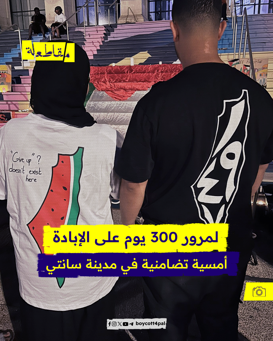 أحيا نُشطاء مؤيدون للقضية الفلسطينية أمسية تضامنية مع فلسطين وغزة في مدينة سانتي بكالفورنيا لمرور أكثر من 300 يوم من الإبادة الجماعية في قطاع غزة، وللفت الأنظار حول الأوضاع المأساوية التي يمر بها القطاع وللمطالبة بوقف الحرب وفلسطين حرة.