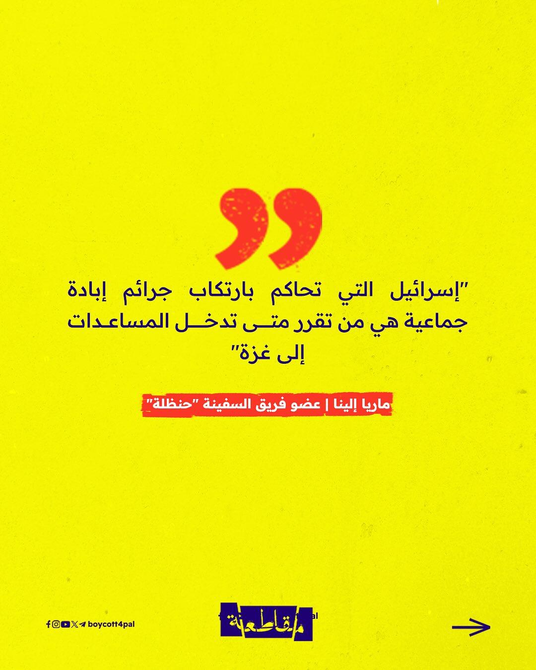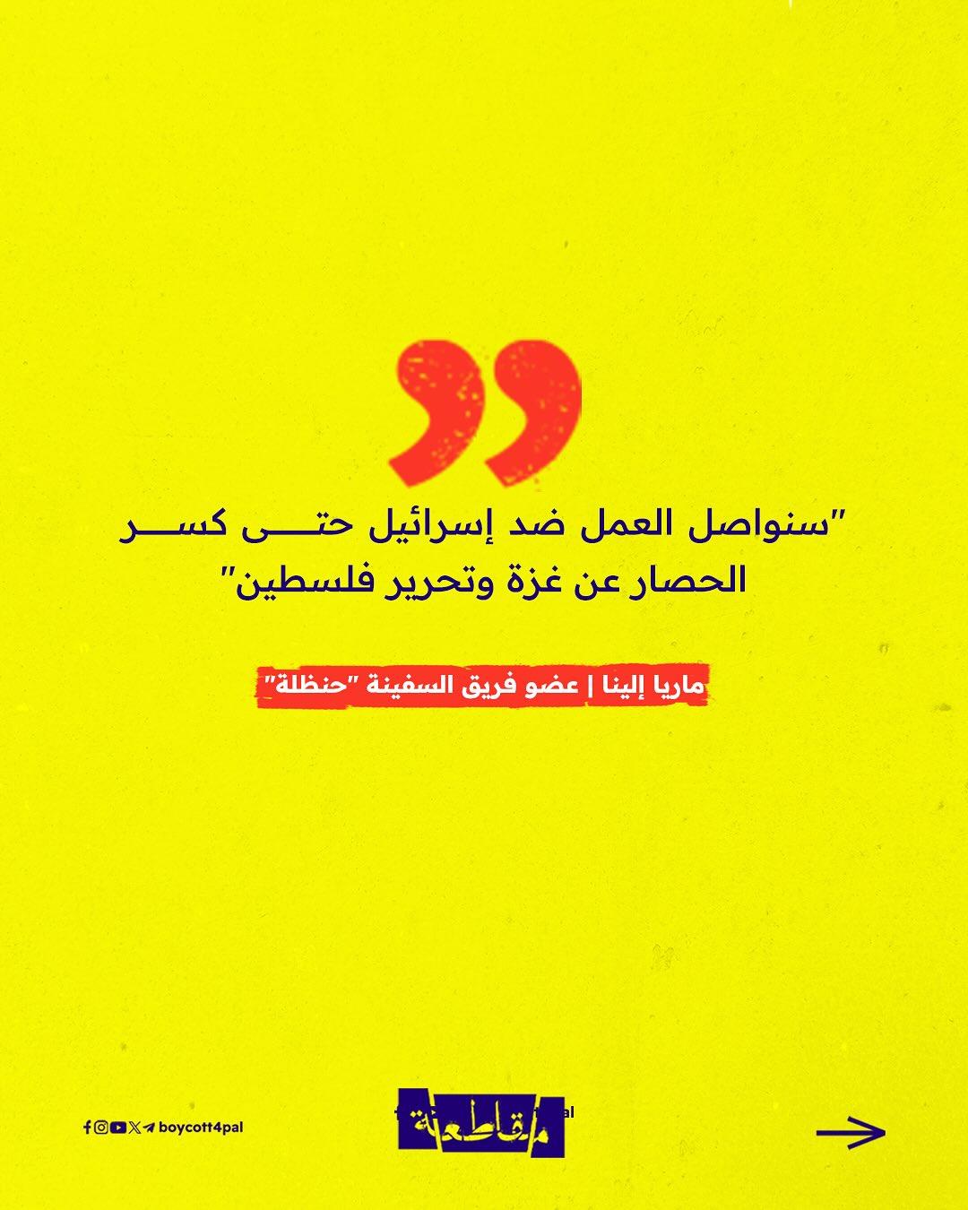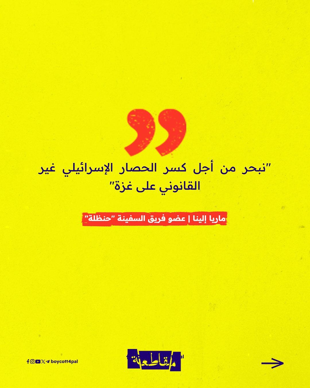 وقالت ماريا إلينا، وهي إحدى أعضاء الطاقم الدولي على متن السفينة، في تصريح صحفي من على ظهر السفينة: "نبحر من أجل كسر الحصار الإسرائيلي غير القانوني على غزة”، مشددة على أن ما يحدث في القطاع هو جريمة مستمرة بحق الإنسانية.