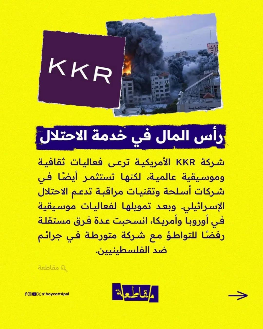 قرار هذه الفرق لم يكن سهلًا، لكنه يعكس وعيًا متزايدًا بأن الفنون لا يجب أن تكون أداة للتغطية على الانتهاكات. فبينما تُغدق KKR الأموال على المسارح والمنصات الموسيقية، تواصل تمويل مشاريع تدعم الاستيطان والاحتلال وتنتزع حقوق الفلسطينيين على الأرض.