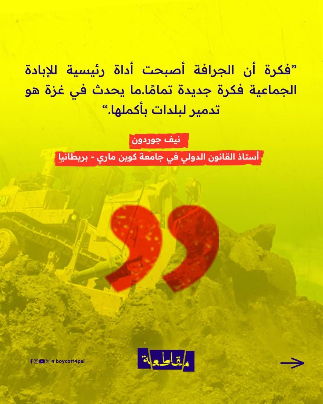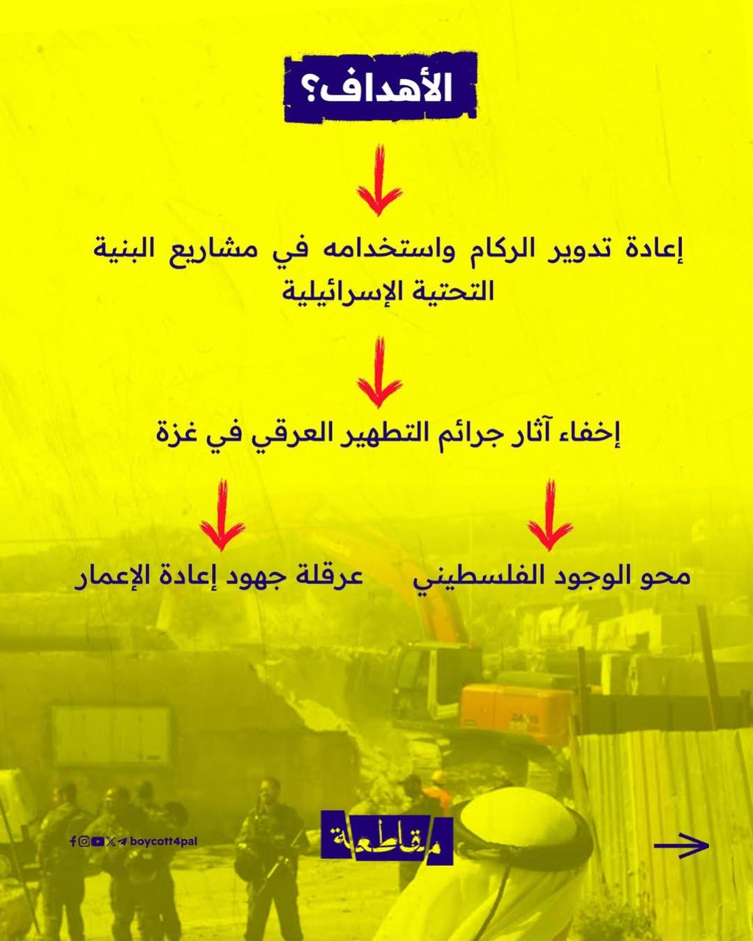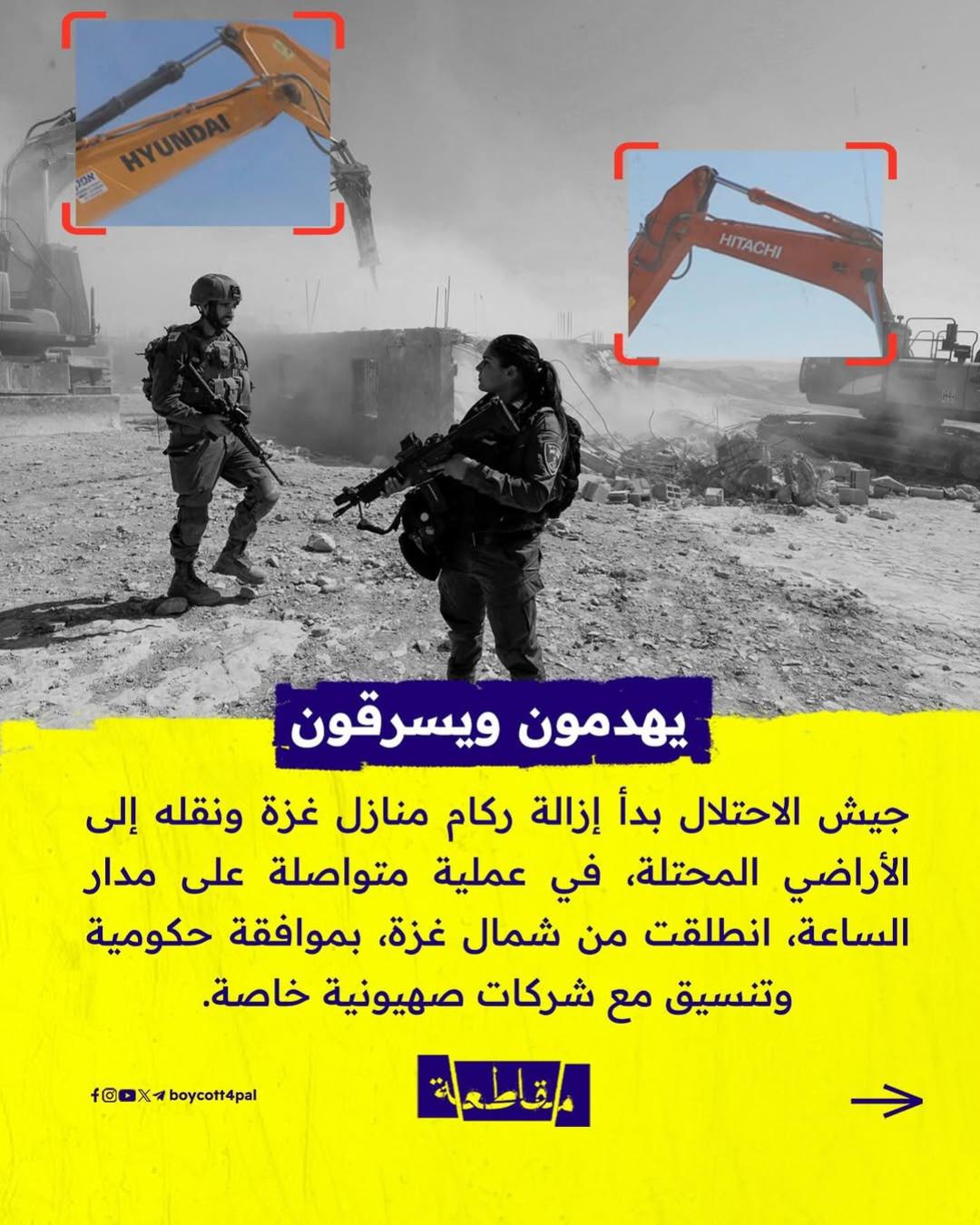 شركات عالمية تتواطأ وتتربح، فتتحول الجرافة إلى أداة إبادة، والركام إلى غنيمة.