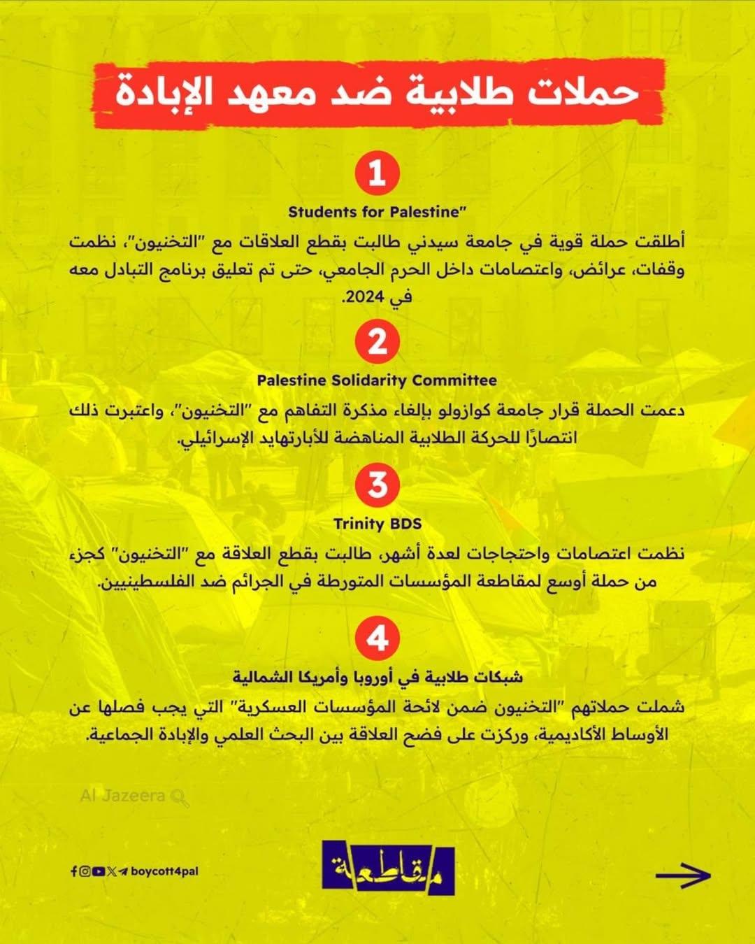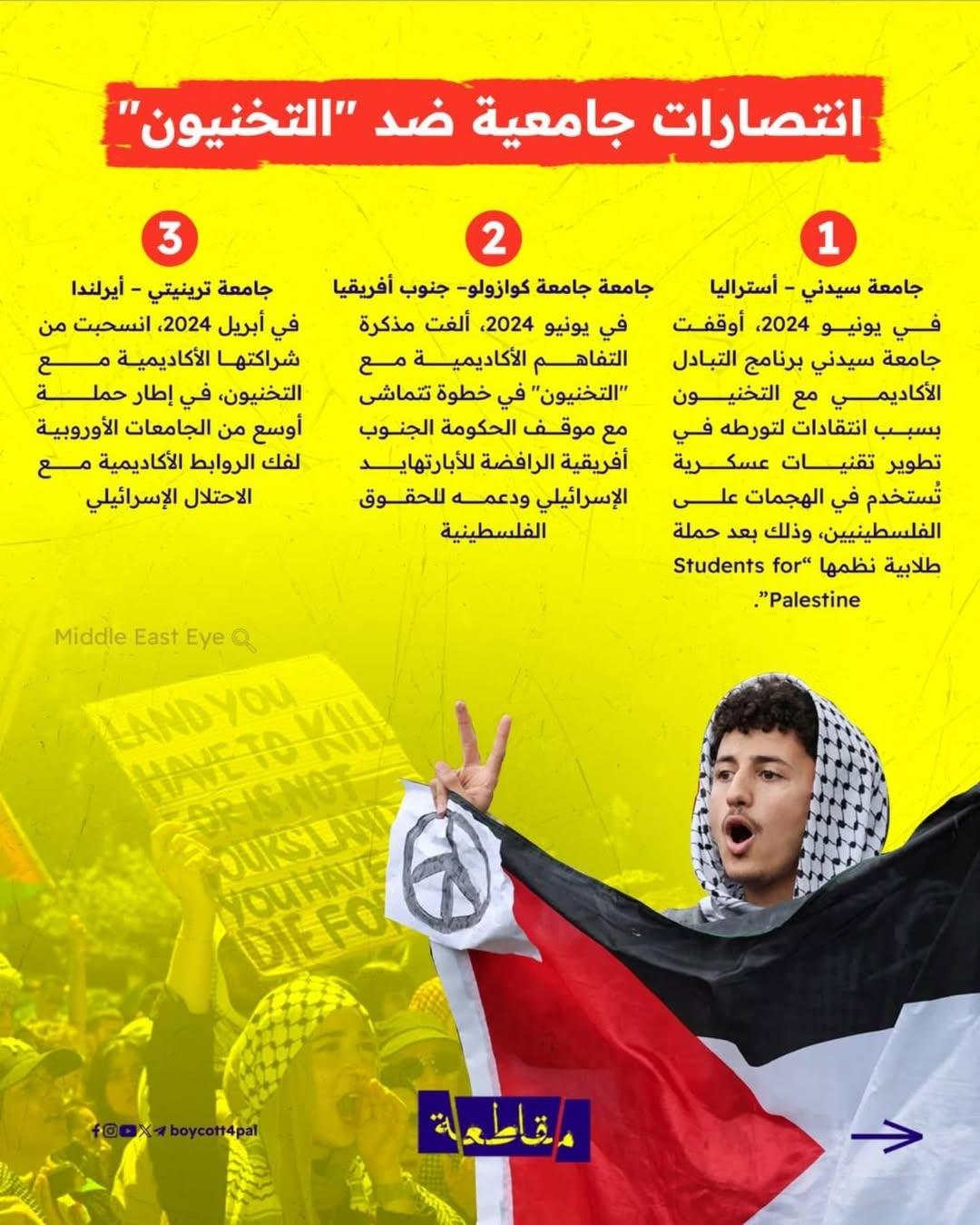 لكن الصمت لم يدُم.. من سيدني إلى دبلن، ومن كوازولو إلى أوروبا وأمريكا الشمالية، أطلق الطلاب انتفاضاتهم الأكاديمية، رافضين أن تكون جامعاتهم جسورًا للتعاون مع مؤسسة متورطة في جرائم حرب. عرائض، اعتصامات، ووقفات احتجاجية دفعت جامعات مثل سيدني، ترينتي، وكوازولو إلى قطع علاقتها بـ”التخنيون”، في انتصارات تُحسب لصوت الضمير الطلابي.