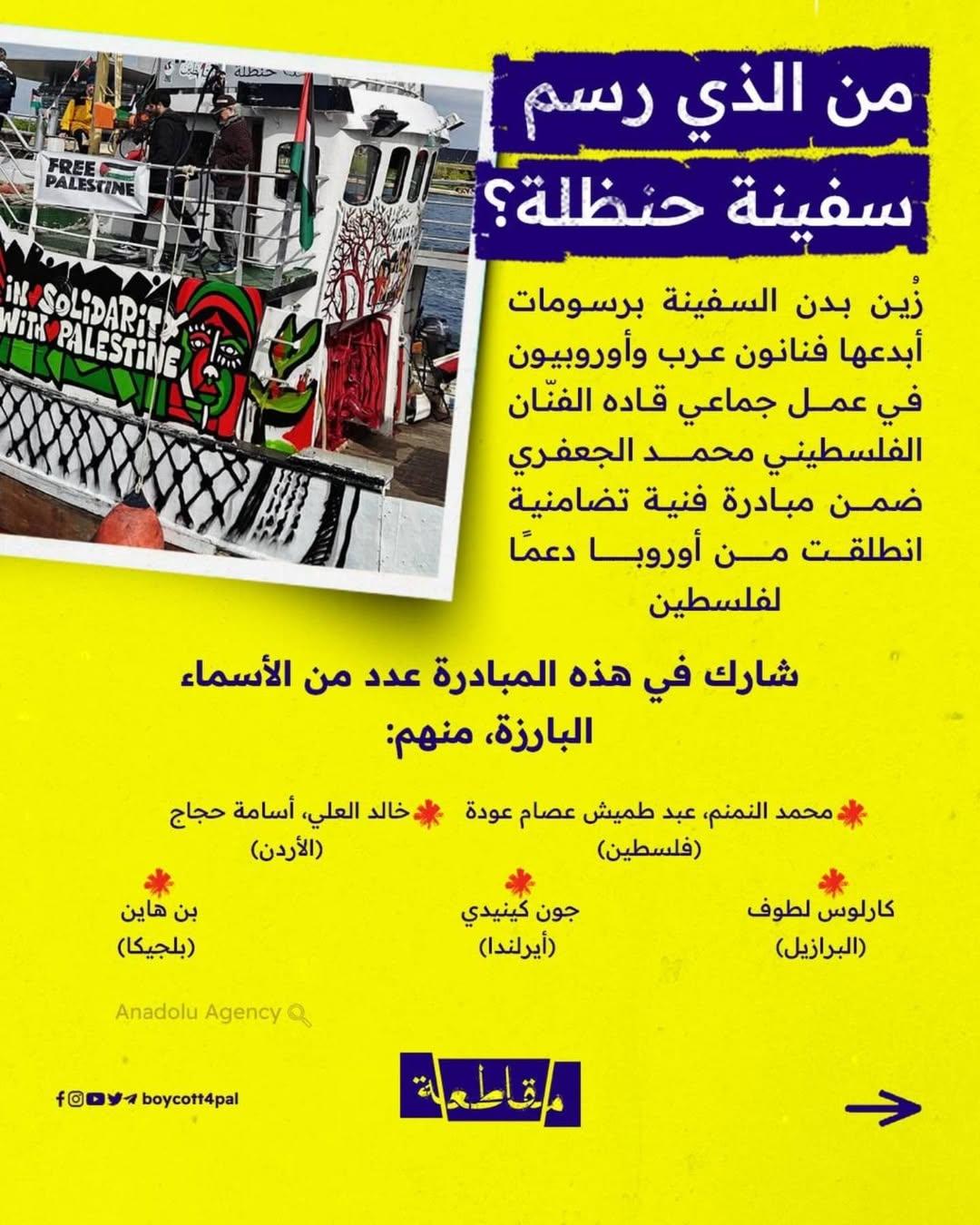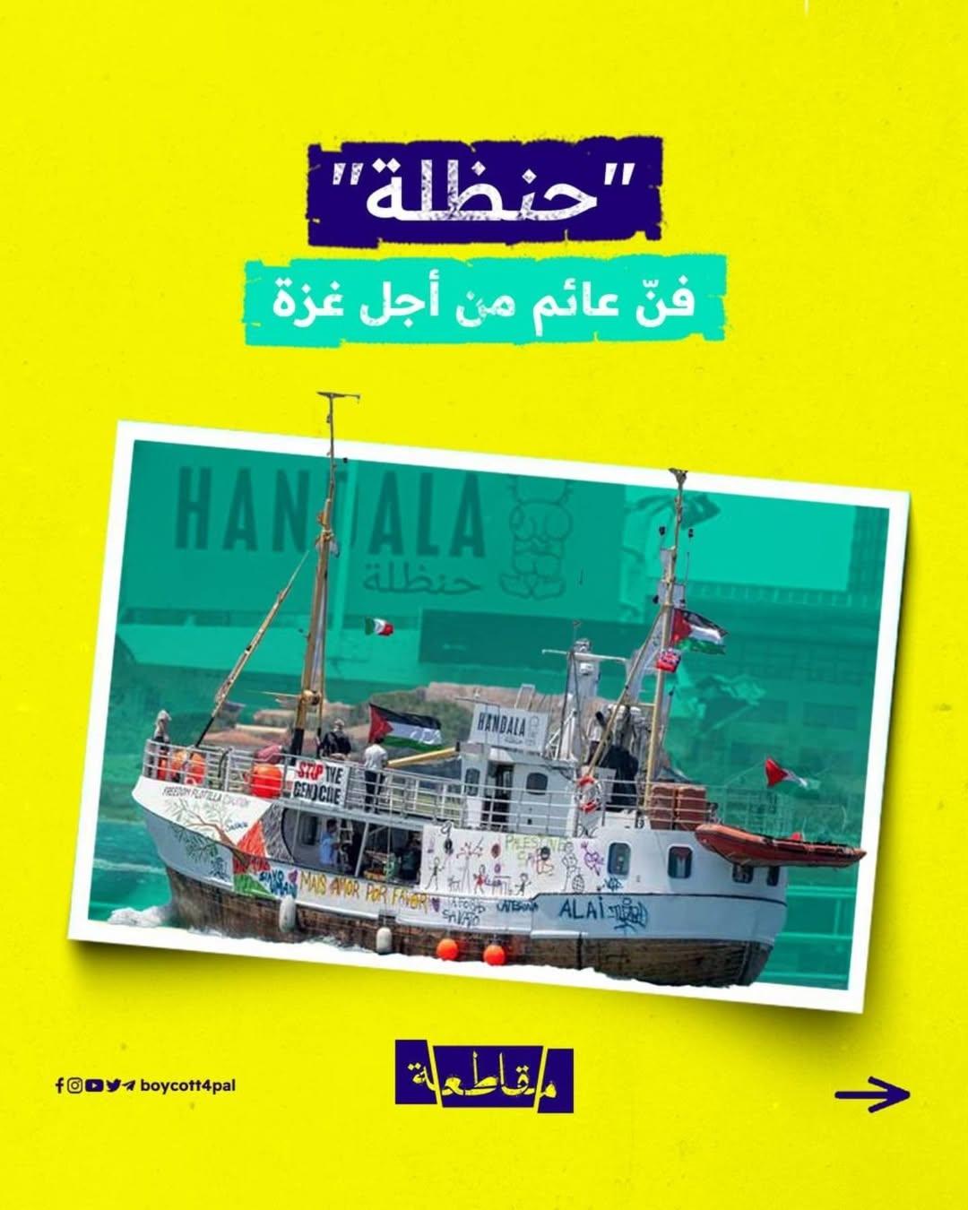 تحوّلت سفينة حنظلة من قارب إلى منصة فنية تجوب البحار، حاملة صدى غزة في وجه العالم، حيث شكّلت رسوماتها وشعاراتها مساحة مفتوحة لرواية معاناة المحاصَرين في غزة وصمودهم.