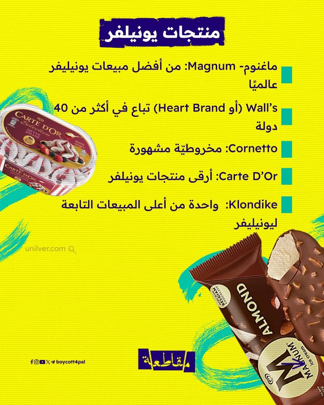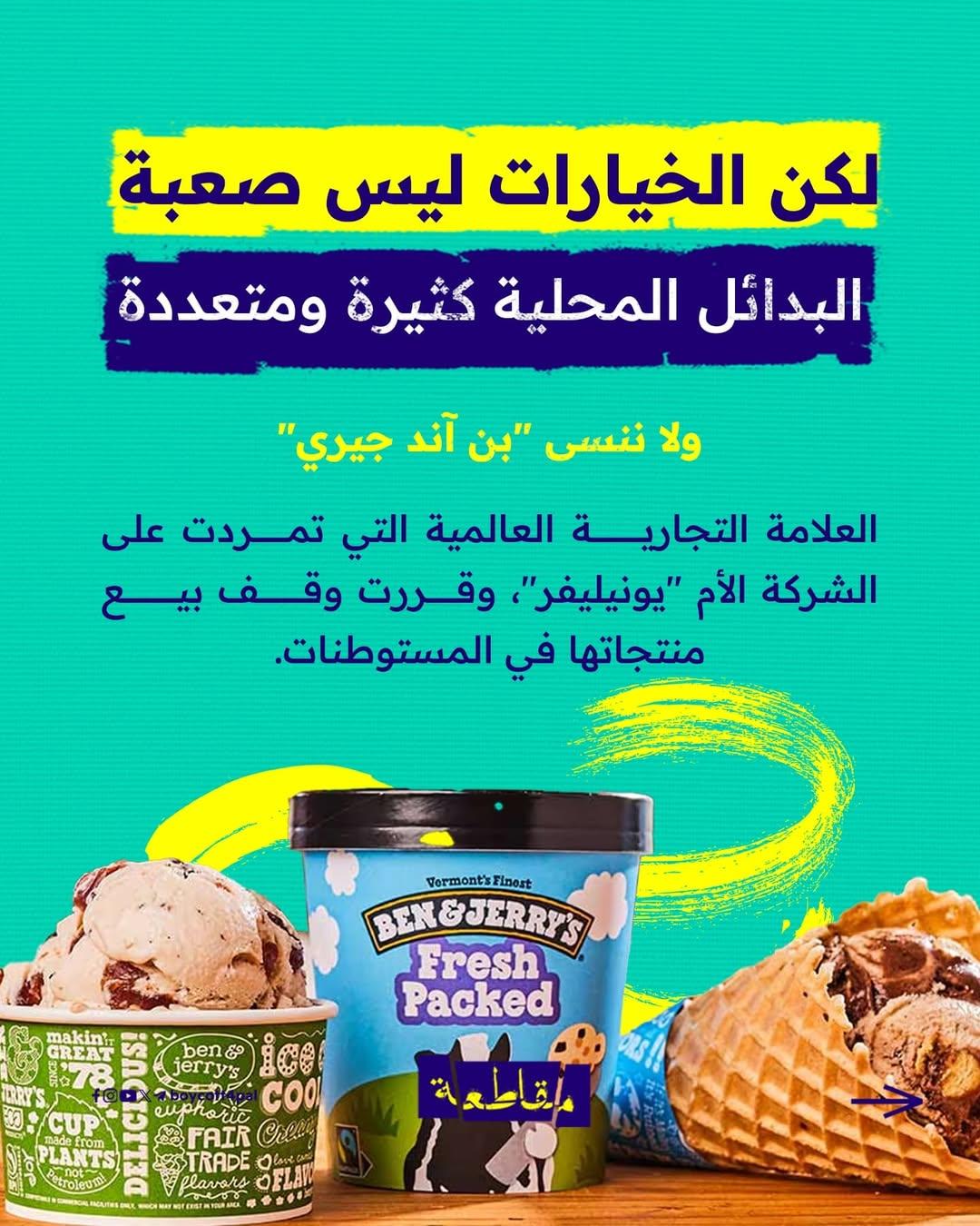 في هذه المادة، نكشف لك أنواعًا شهيرة من البوظة تدعم الاحتلال بشكل مباشر أو عبر شركاتٍ أمّ تورّطت في تمويل الانتهاكات أو التعاون مع جيشه.