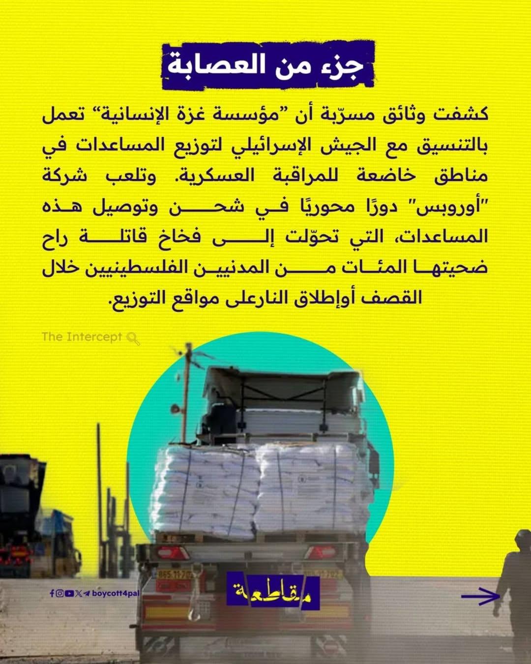 لم تكن مشاركتها تقنية أو لوجستية فحسب، بل كانت تخطيطًا ميدانيًا وتنفيذًا مباشرًا لنقاط “المساعدات” التي تحوّلت إلى فخاخ حقيقية حصدت أرواح المدنيين الجائعين. من التعاون مع الجيش الإسرائيلي إلى الشراكة مع منظمات إنسانية مزعومة، لعبت “أوروبس” دورًا مزدوجًا خطيرًا، يُظهر كيف تتحول الشركات من مجرد مزوّد خدمات إلى أداة قمع وقتل.