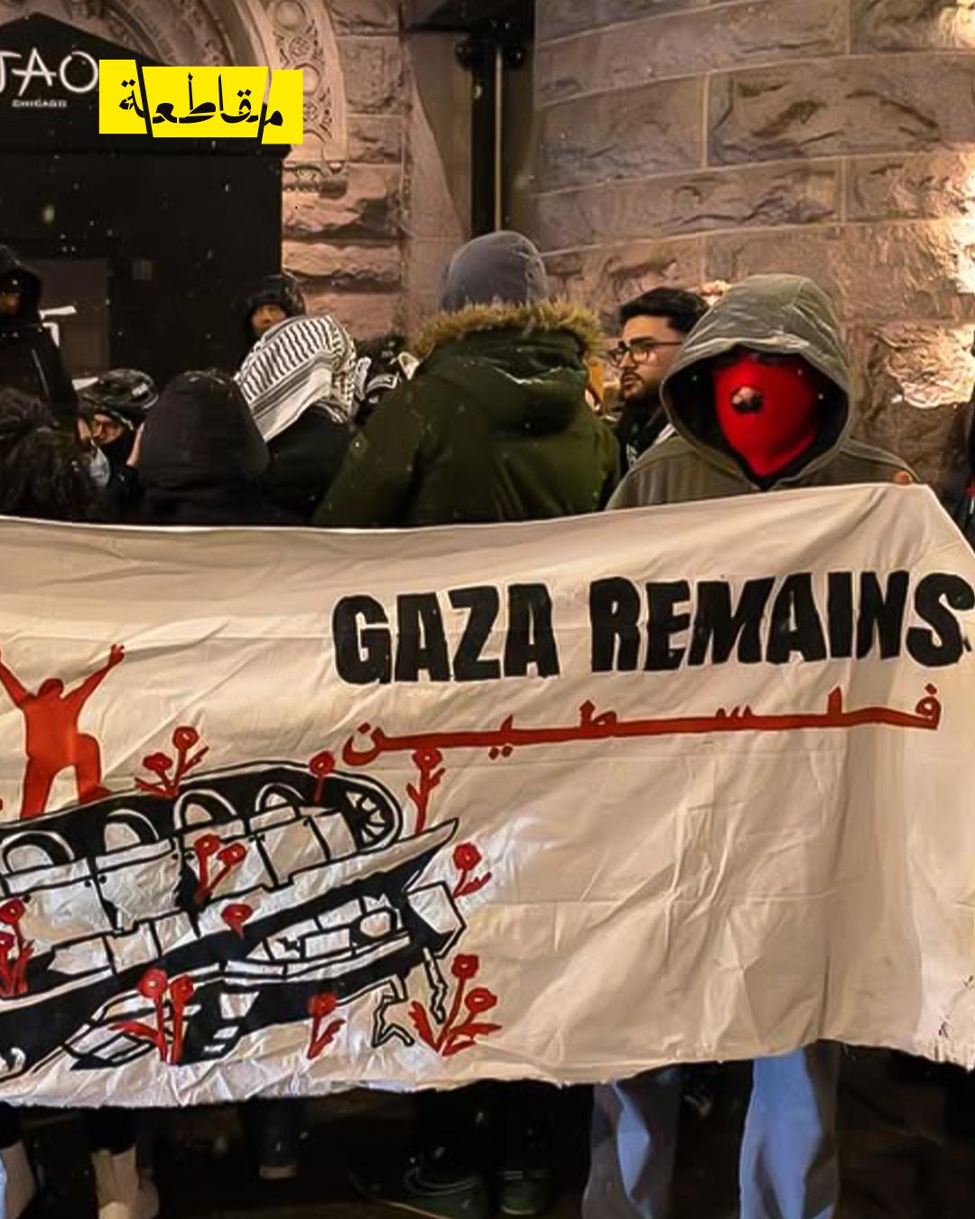 احتشد عشرات المتظاهرين المؤيدين لفلسطين، أمام مطعم تاو شيكاغو في وسط مدينة شيكاغو بولاية إلينوي الأمريكية، احتجاجًا على فعالية لجمع التبرعات لصالح جيش الاحتلال الإسرائيلي، نظمتها منظمة أصدقاء جيش الدفاع الإسرائيلي.