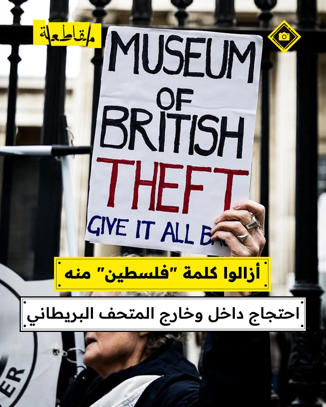 نظّم نشطاء وقفة احتجاجية داخل وخارج المتحف البريطاني في لندن، مطالبين بإنهاء ما وصفوه بتواطؤ المؤسسة في قمع وإسكات الصوت الفلسطيني، وكشف تاريخها المرتبط بالمساعي الإمبريالية. وقام محتجون بإنزال لافتة داخل المتحف، كما احتلوا الغرفة رقم 57 بعد إزالة كلمة “فلسطين” منها، بحسب ما أفادت به مصادر ناشطة.