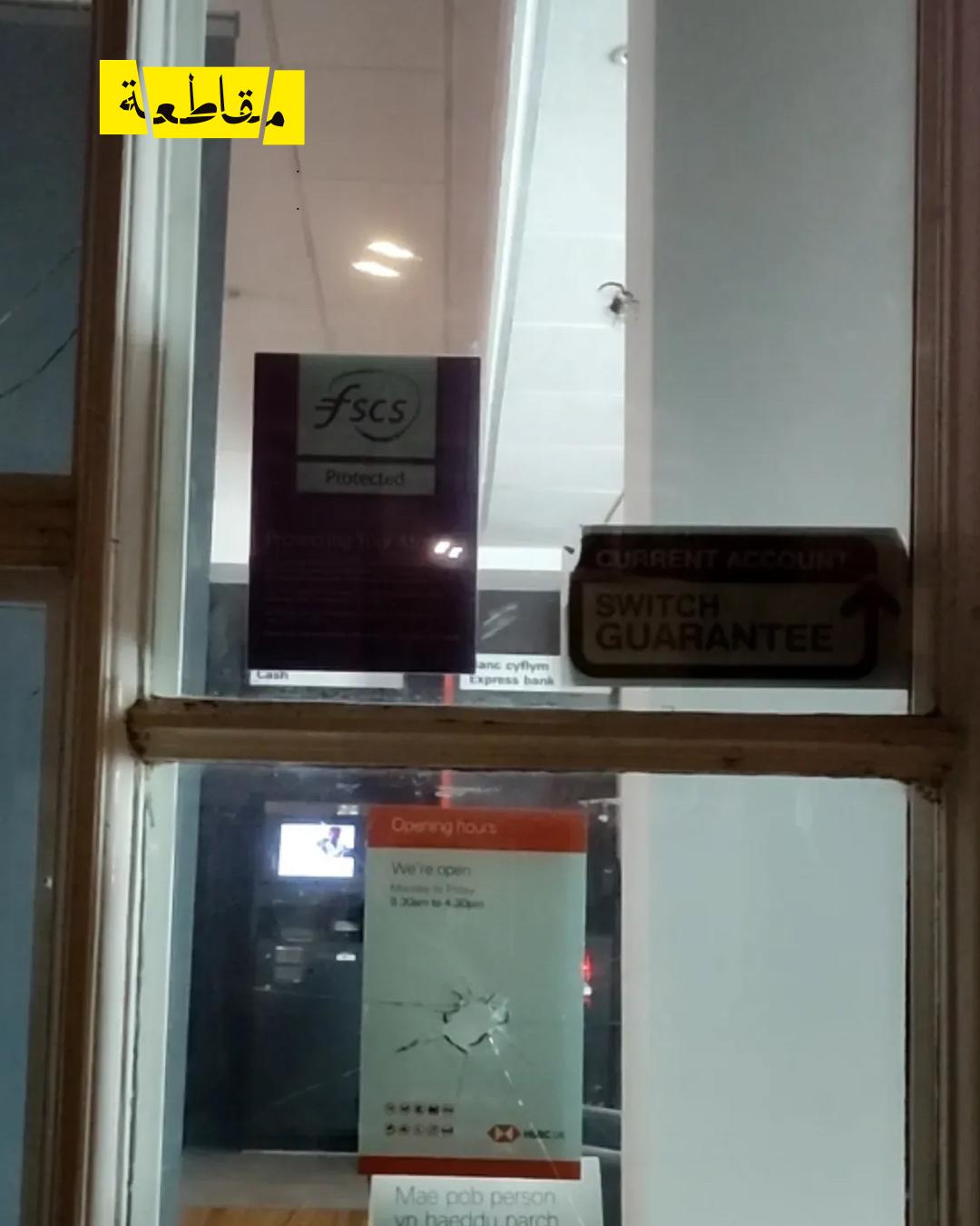 استهدف نشطاء من مجموعة The After Shock فرع بنك HSBC في مدينة بانغور، بريطانيا، بهدف الضغط على البنك لقطع جميع علاقاته مع شركة "إلبيت سيستمز" الإسرائيلية.