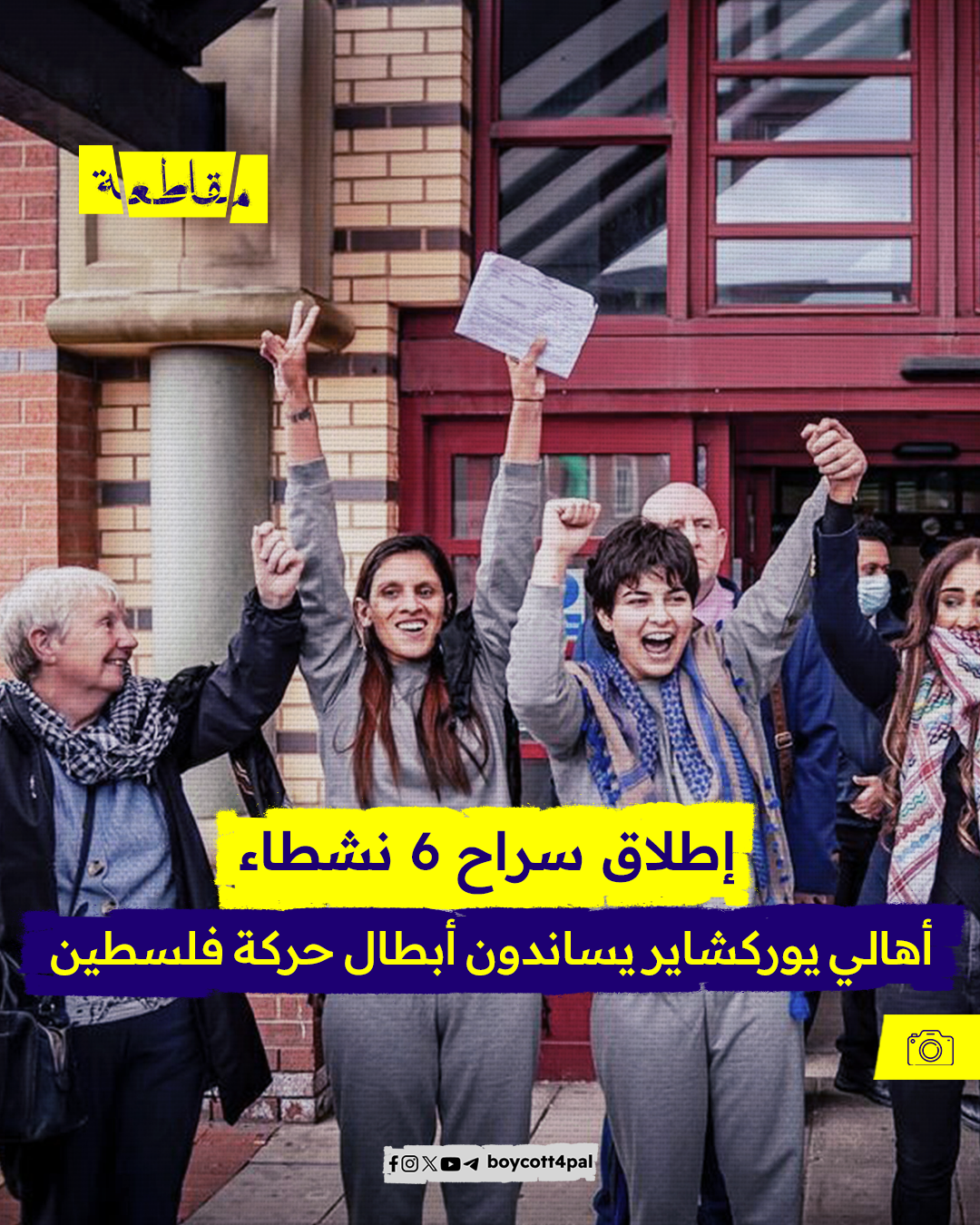 تجمع أهالي يوركشاير ومؤيدو فلسطين أمام محكمة ليدز لدعم 7 نشطاء أثناء محاكمتهم لمهاجمتهم شركات داعمة للإبادة من بينها إلبيت للأسلحة، حيث أطلقت المحكمة سراح 6 نشطاء وأبقت واحدًا قيد الاحتجاز.
