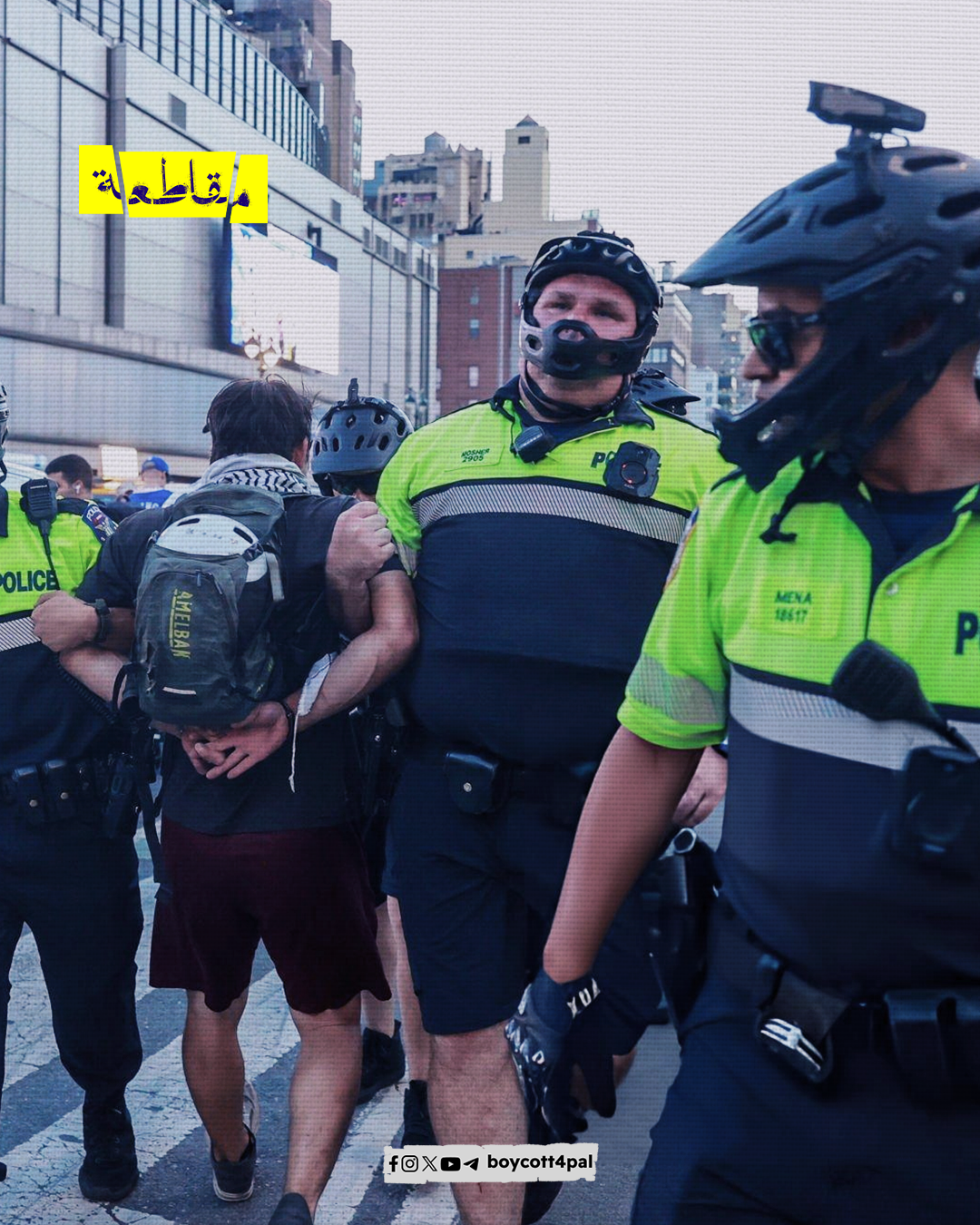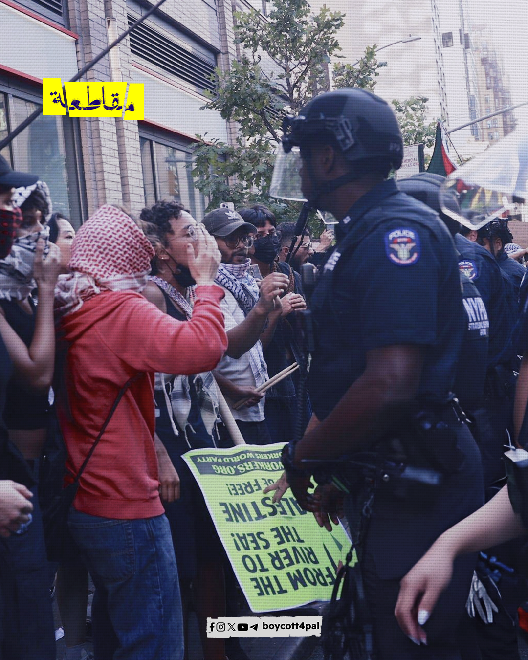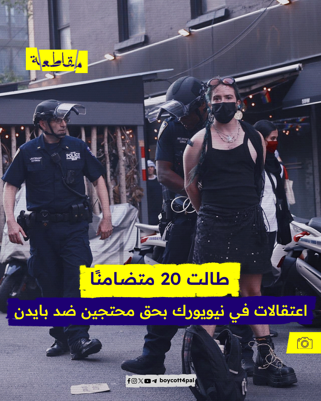 حاصرت الشرطة المتظاهرين، مما أدى إلى اعتقال بعض المتضامنبن الذين تجمعوا بالقرب من حدث حملة الرئيس جو بايدن في مدينة نيويورك، ووصل بايدن إلى المكان حوالي الساعة 7:45 مساءً، بينما كان المتظاهرون في الخارج يهتفون ضد السياسيين الذين يرتكبون الإبادة الجماعية وأنه غير مرحب بهم في مدينة نيويورك.