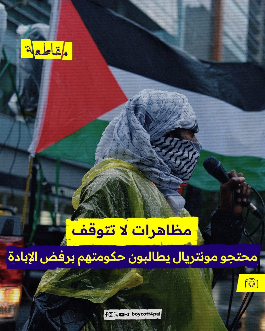 لأيام متتالية يواصل مؤيدو فلسطين التظاهر في مونتريال رفضًا لإراقة الدماء في غزة وضد تورط الحكومة الكندية في دعم الاحتلال الإسرائيلي عبر استمرار توريدها للأسلحة التي تستخدم في ارتكاب أعمال يحاسب عليها القانون الدولي.