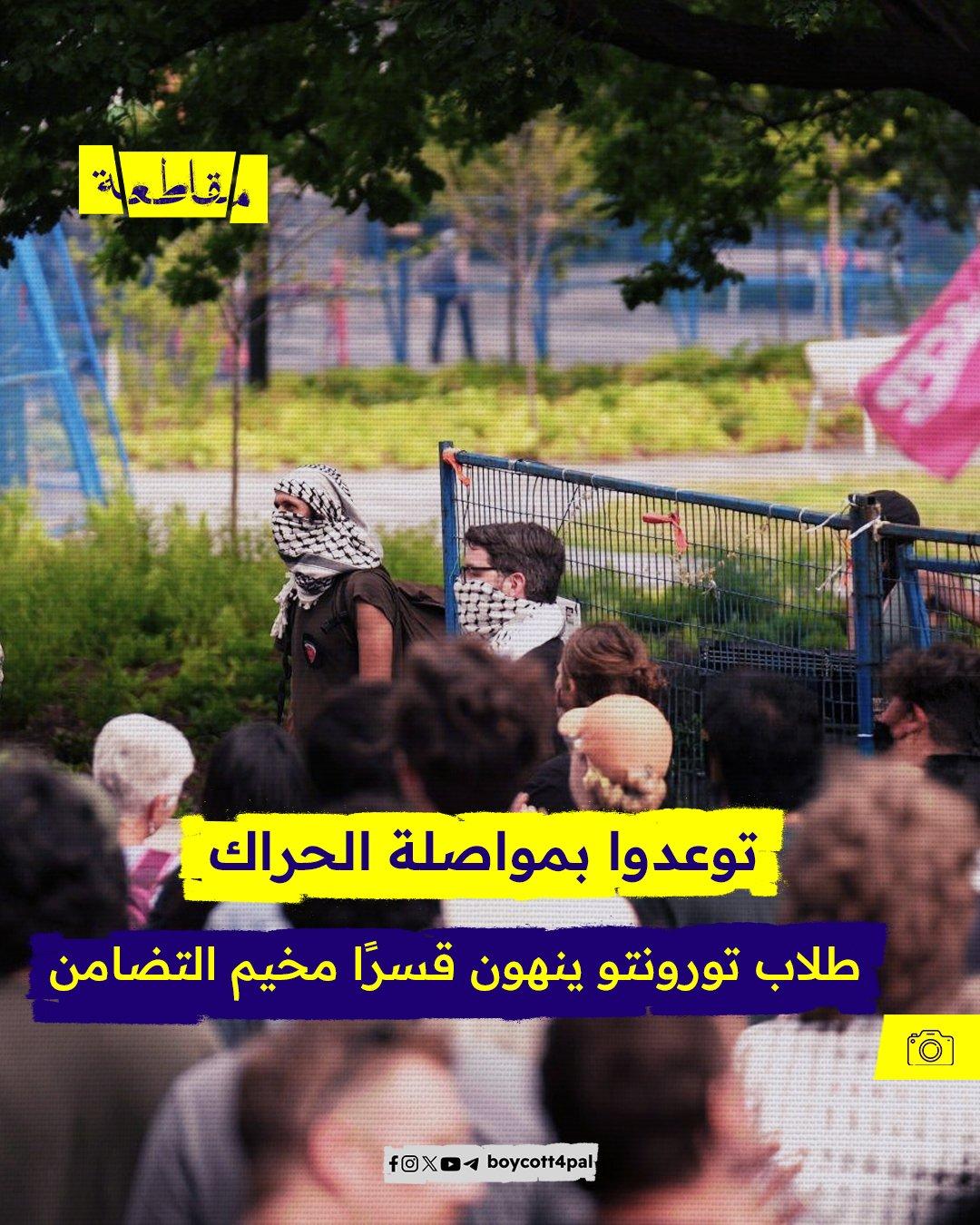 في اليوم 63 من تضامنهم أنهى طلاب جامعة تورونتو مخيمهم التضامني مع غزة بناءًا على أمر قضائي صادر عن محاكم أونتاريو ضد الطلاب الذين يطالبون الجامعة بالكشف عن استثماراتها ووقف التعاون مع الاحتلال ومناصريه. وتوعد الطلاب بمواصلة حراكهم ونشاطهم الداعم لفلسطين رغم انتهاء المخيم.