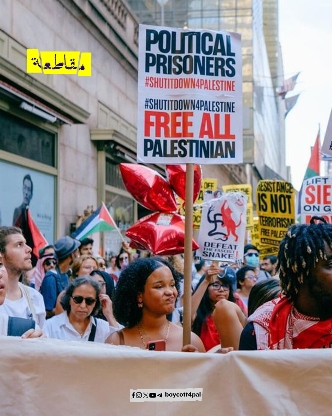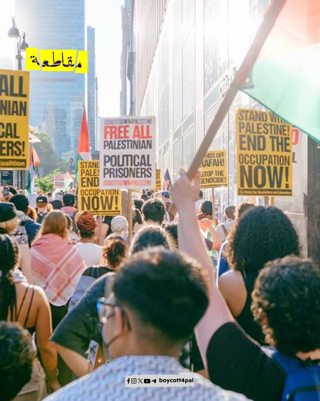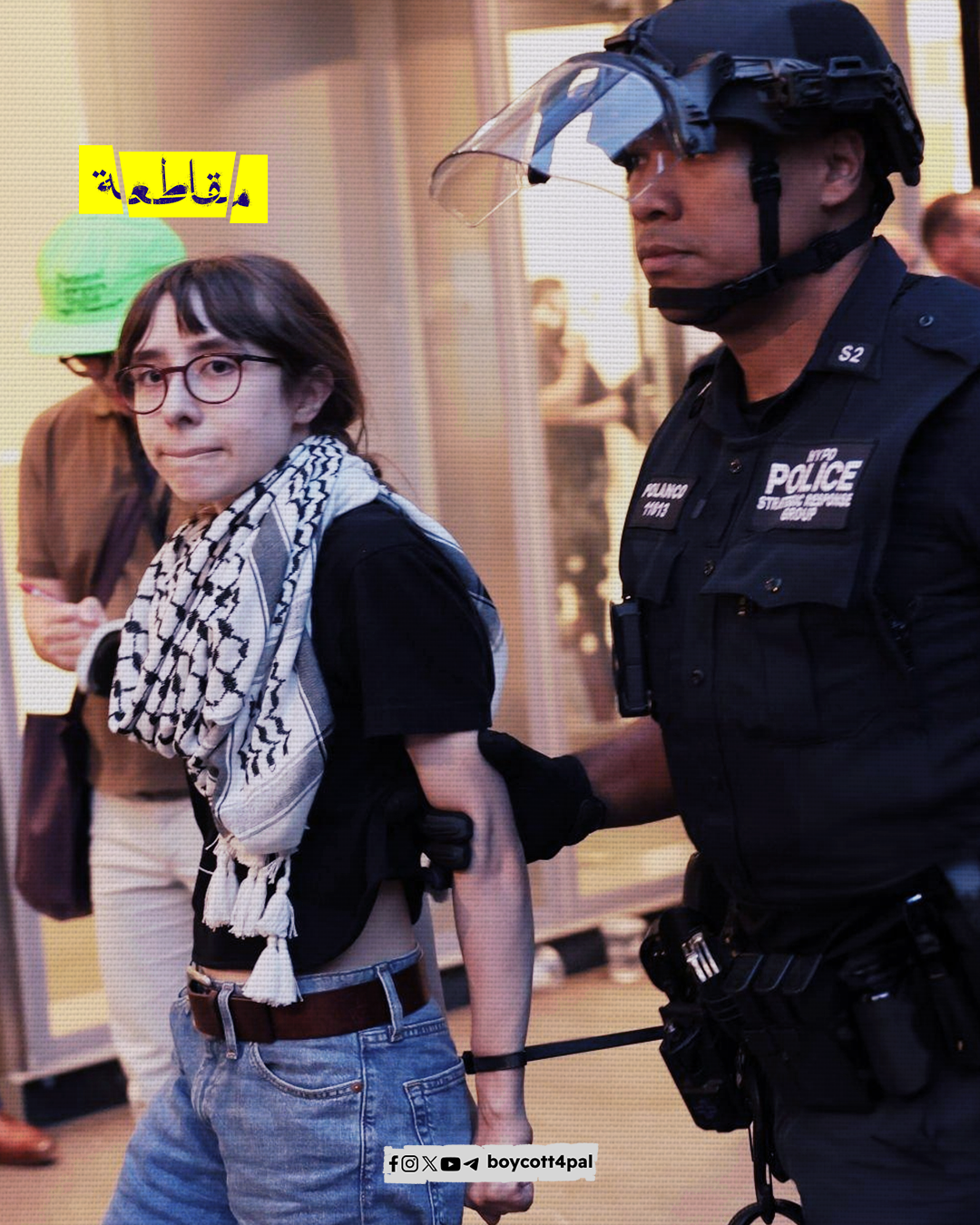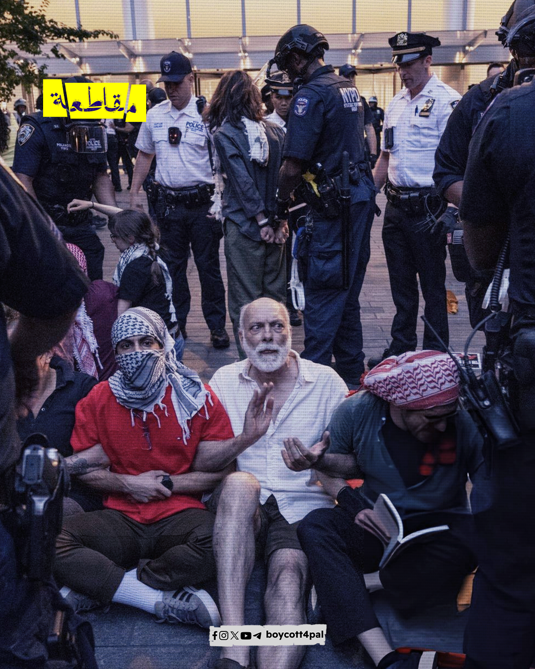 تجمع نُشطاء مؤيدون لفلسطين في شوارع وسط مانهاتن بمدينة نيويورك للاحتجاج ضد شركة "ميرسك"، وهي شركة شحن وخدمات لوجستية تنقل الملايين من الأسلحة ومكونات الأسلحة لتسهيل الإبادة الجماعية التي يرتكبها كيان الاحتلال ضد الفلسطينيين بغزة.