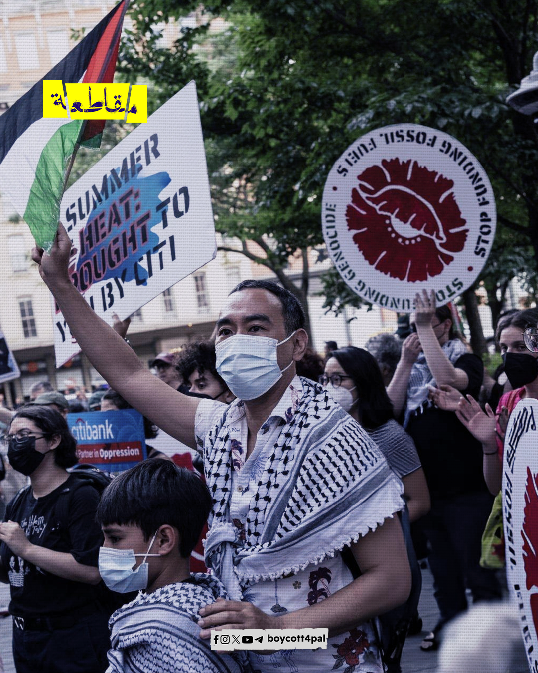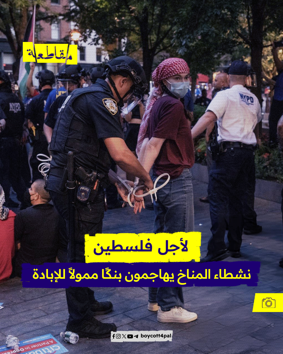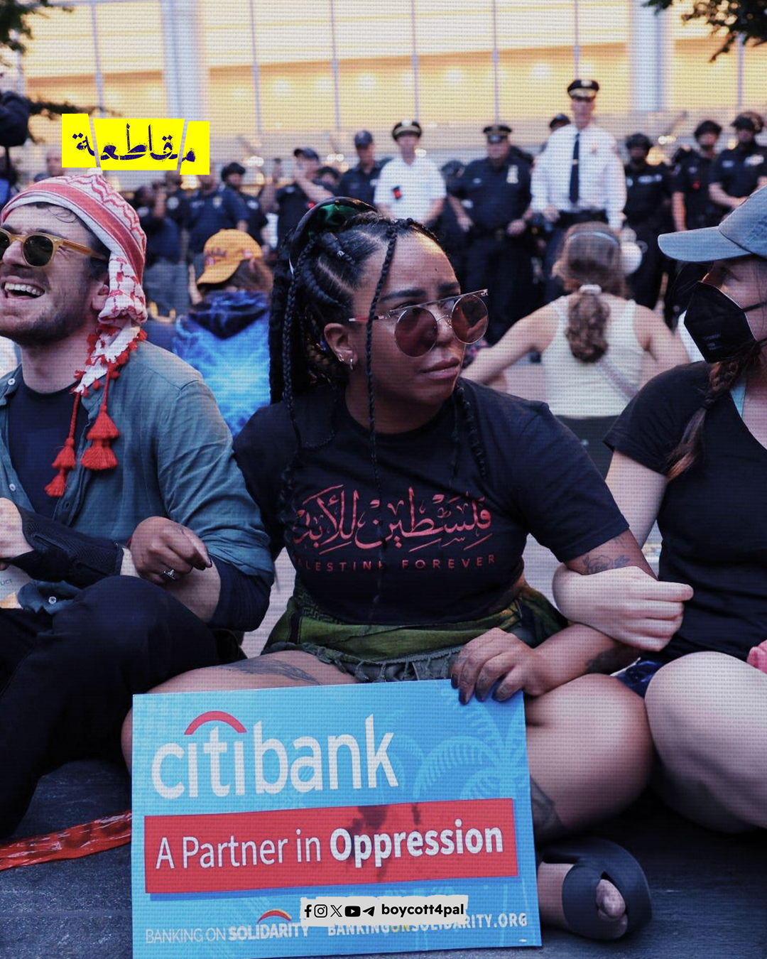تظاهر العشرات من نشطاء المناخ في مدينة نيويورك أمام المقر الرئيسي لسيتي بنك الذي يعد أكبر ممول أجنبي للاحتلال الإسرائيلي، مطالبين بوقف تمويل الإبادة والجرائم المرتكبة في غزة منذ أكتوبر الماضي.