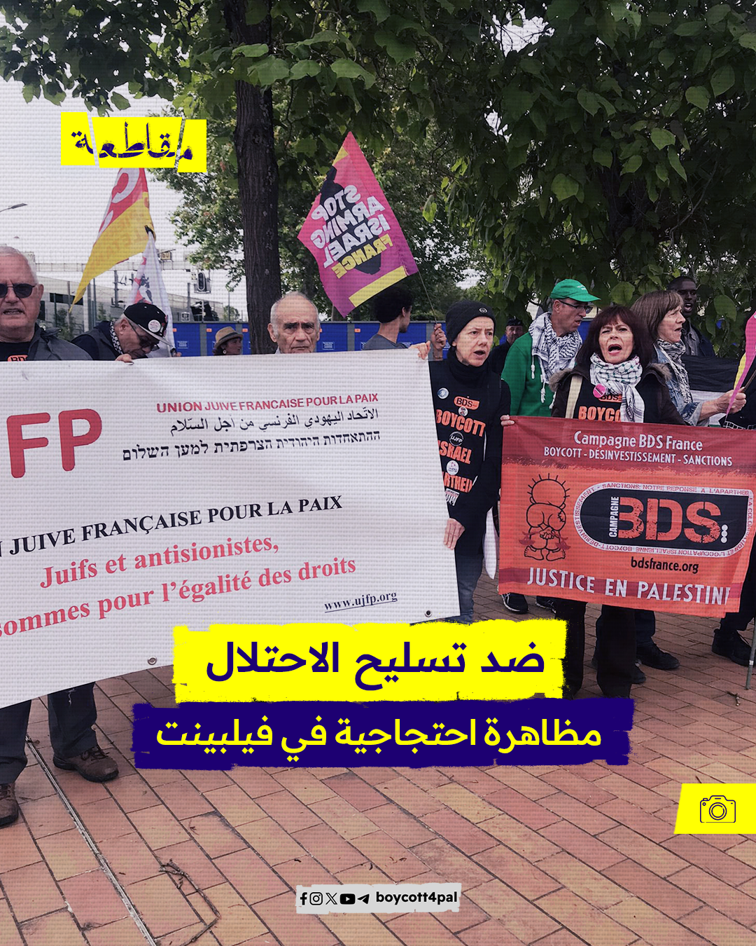 تظاهر أنصار فلسطين في مدينة فيلبينت الفرنسية استجابة لدعوة مجموعة "أوقفوا تسليح إسرائيل" ضد وجود شركات الأسلحة الصهيونية في معرض "يوروساتوري"، وهو أكبر معرض للأسلحة في العالم، وطالب المحتجون بحظر عسكري وفوري ضد كيان الاحتلال.