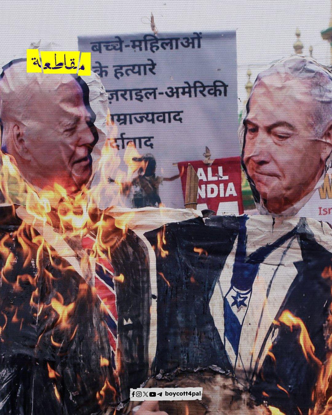 نظمت مجموعة شبابية مؤيدة لفلسطين وقفة احتجاجية في مدينة كولكاتا الهندية ضد استمرار المجازر الصهيونية بقطاع غزة، وقاموا خلالها بحرق مجسمات للرئيس الأمريكي جو بايدن ورئيس الوزراء الإسرائيلي بنيامين نتنياهو، وحملوا الأعلام الفلسطينية ورددوا شعارات مناهضة للحرب ومؤيدة للقضية الفلسطينية.