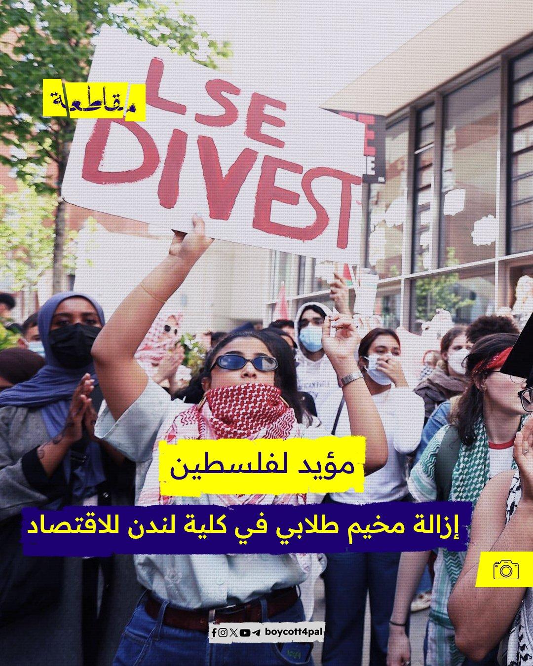 قام الطلاب المتظاهرون المؤيدون للفلسطينيين بتفكيك مخيمهم الذي استمر لمدة شهر في الطابق الأرضي من مبنى كلية لندن للاقتصاد، وكانت المجموعة قد أقامت المعسكر داخل مبنى مارشال بوسط لندن في 14 مايو/أيار، لكنها خسرت معركة قانونية وأُمرت بالمغادرة، ونظموا الطلاب مسيرة قبل إزالة الخيام ورفعوا لافتات والإعلام الفلسطينية وهتفوا شعارات داعمة للقضية ، وتسلقوا من نوافذ المبنى قبل نصف ساعة من الموعد النهائي المحدد في أمر المحكمة.