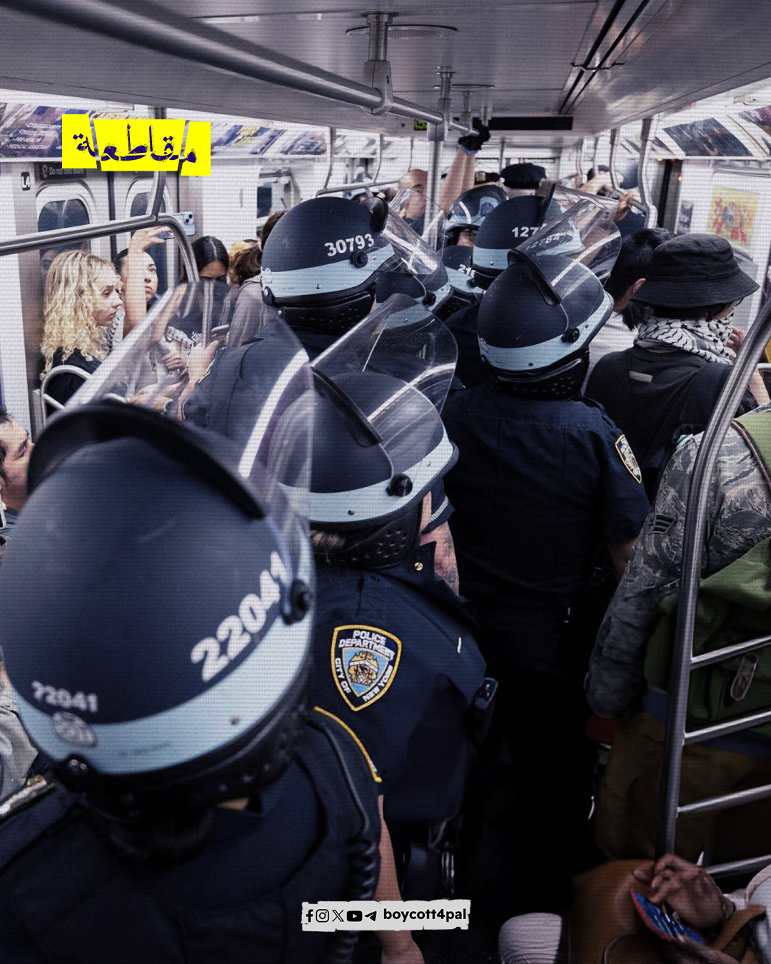 احتشد مؤيدون لفلسطين داخل محطة مترو الأنفاق "يونيون سكوير" في ولاية نيويورك الأمريكية، للتظاهر ضد الحرب المستمرة في قطاع غزة والتعبير عن التضامن مع الفلسطينيين، وهتف المتظاهرون "غزة.. غزة" وتلثموا بالكوفية الفلسطينية وأشعلوا الإنارة بألوان العلم الفلسطيني، وتدخلت الشرطة فيما بعد لفض الحشد.