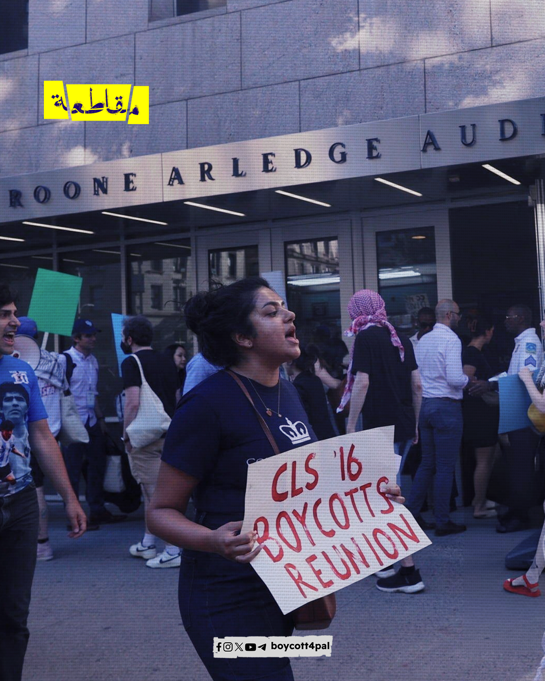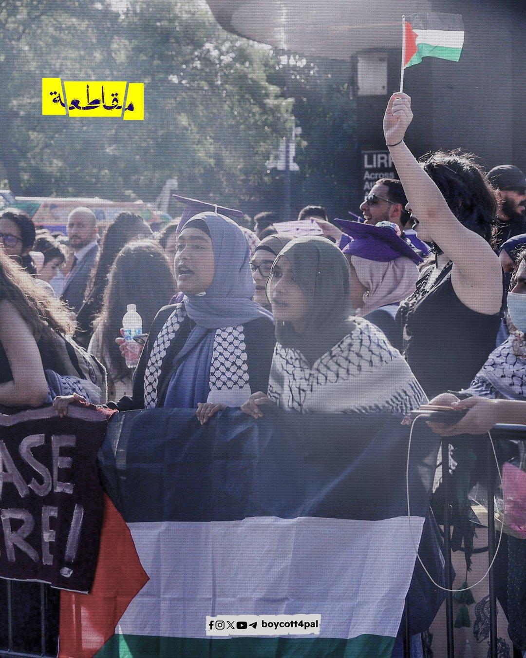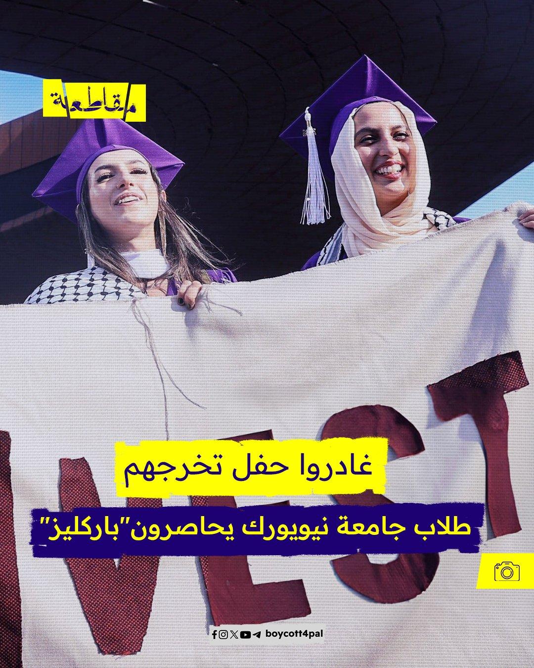 نظم طلاب متخرجون من جامعة نيويورك احتجاجًا أمام مركز "باركليز" الذي يدعم كيان الاحتلال في إبادته بقطاع غزة، حيث أُقيم يُقام حفل التخرج السنوي، قائلين: "نرفض الاحتفال بالتخرج بينما تم تدمير الجامعات في غزة".