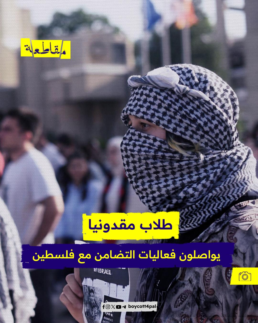 مظاهرة لطلاب جامعات إس إس سيريل، وميثوديوس الحكومية في مقدونيا تضامنًا مع الشعب الفلسطيني، ورفضًا لجرائم الإبادة الجماعية التي يواصل الاحتلال ارتكابها منذ قرابة 8 شهور.