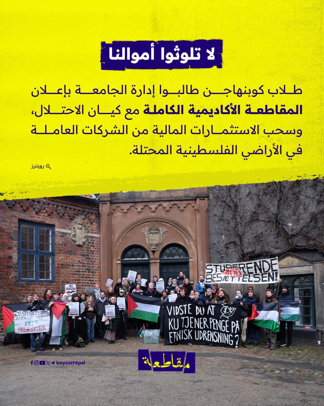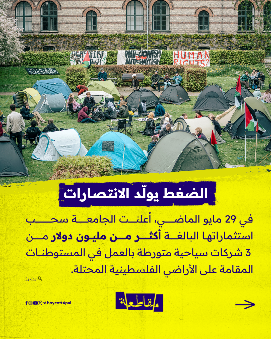 انتصارُ طلابي جديد، كان مسرحه جامعة كوبنهاجن الدنماركية، وعنوانه سحب الاستثمارات من الشركات المتورطة في الإبادة الجماعية، والمستهدف فيه تطبيقات شهيرة يعرفها معظمنا بل ويتعامل معها أو يفكر في ذلك مع اقتراب موسم الصيف والإجازات.. ماذا حدث في كوبنهاجن؟ هذه المادة تقدم لكم الإجابة ويبقى القرار والفعل والتوعية لمحيطهم عهدة لديكم.