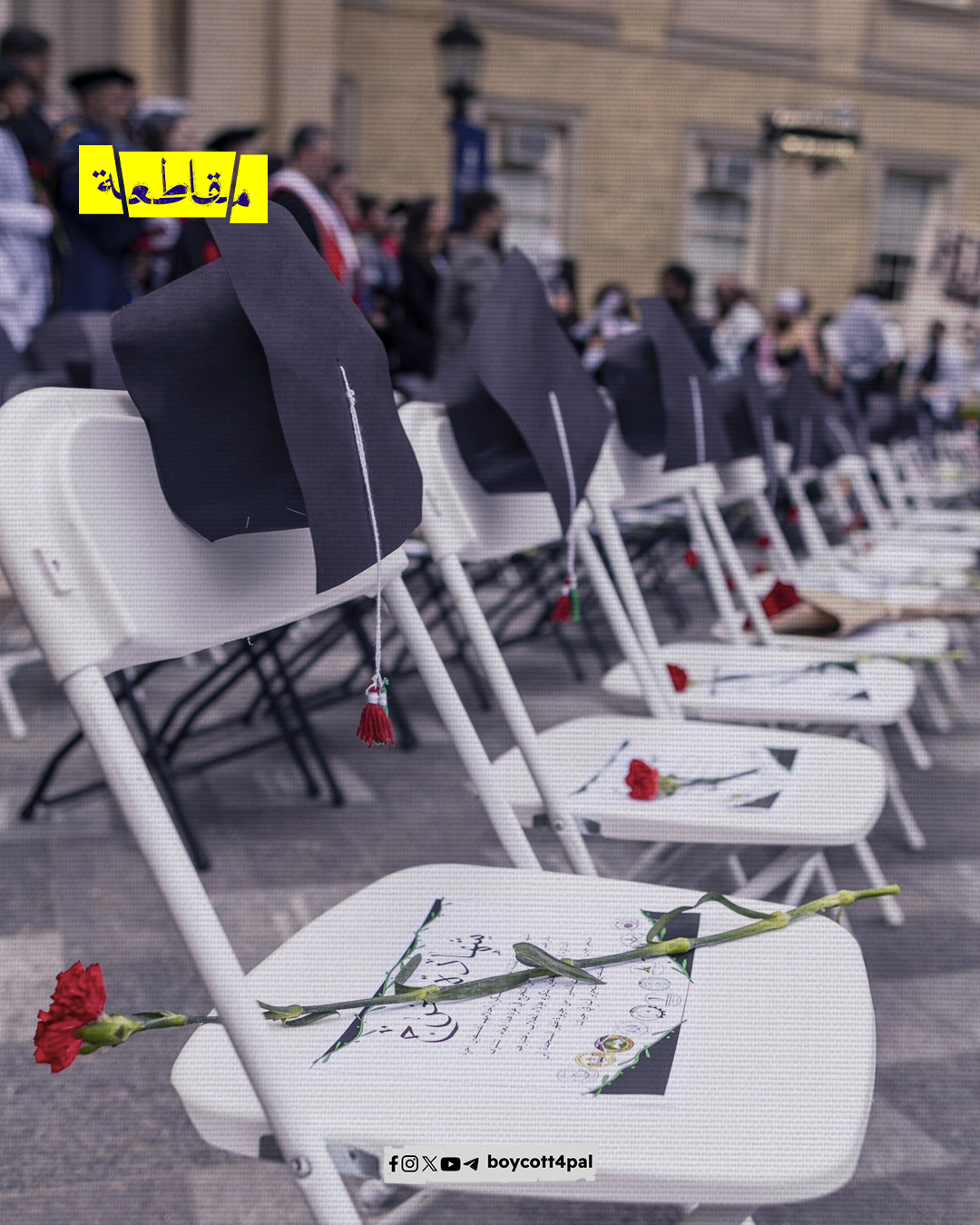 أقام الطلاب وأعضاء هيئة التدريس من المتضامنين مع فلسطين في جامعة تورونتو الكندية، حفل تخرج خاص بطلاب قطاع غزة الشهداء الذين لن يتمكنوا من حضور احتفالات تخرجهم، بسبب قتلهم من قبل الاحتلال الإسرائيلي. وفي أبريل قالت الأمم المتحدة إن 80% من المدارس في غزة تعرضت لأضرار و دمرت خلال الحرب.