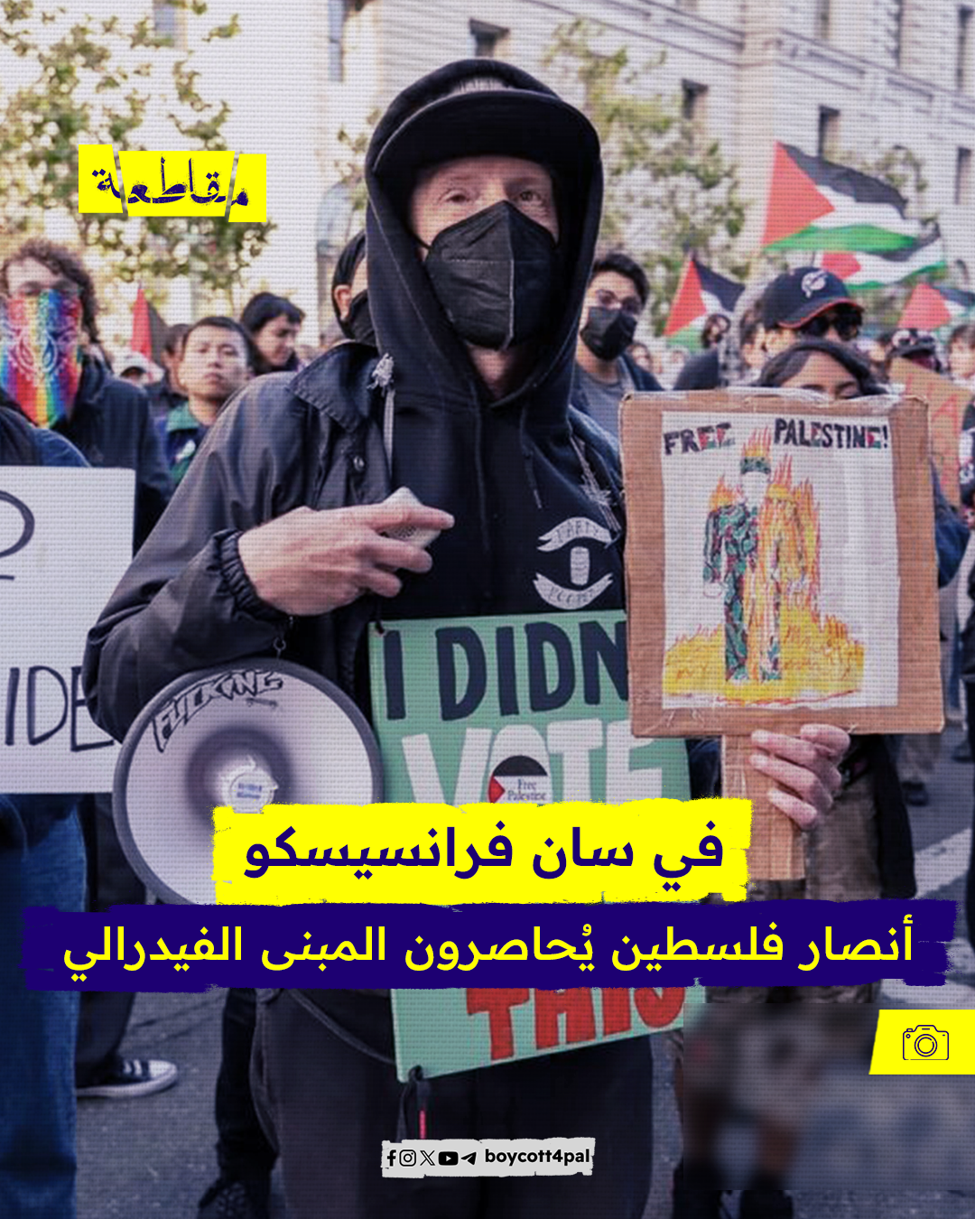 حاصر مؤيدون لفلسطين المبنى الفيدرالي في مدينة سان فرانسيسكو الأمريكية تعبيرًا عن رفضهم للمجازر الإسرائيلية في قطاع غزة، واستمرار البيت الأبيض في دعم لاحتلال الإسرائيلي، حيث رفع المتظاهرون الأعلام الفلسطينية ولطخوا المبنى بالطلاء الأحمر للفت أنظار العالم على غزة، وطالبوا بايدن بوقفٍ فوري لإطلاق النار.