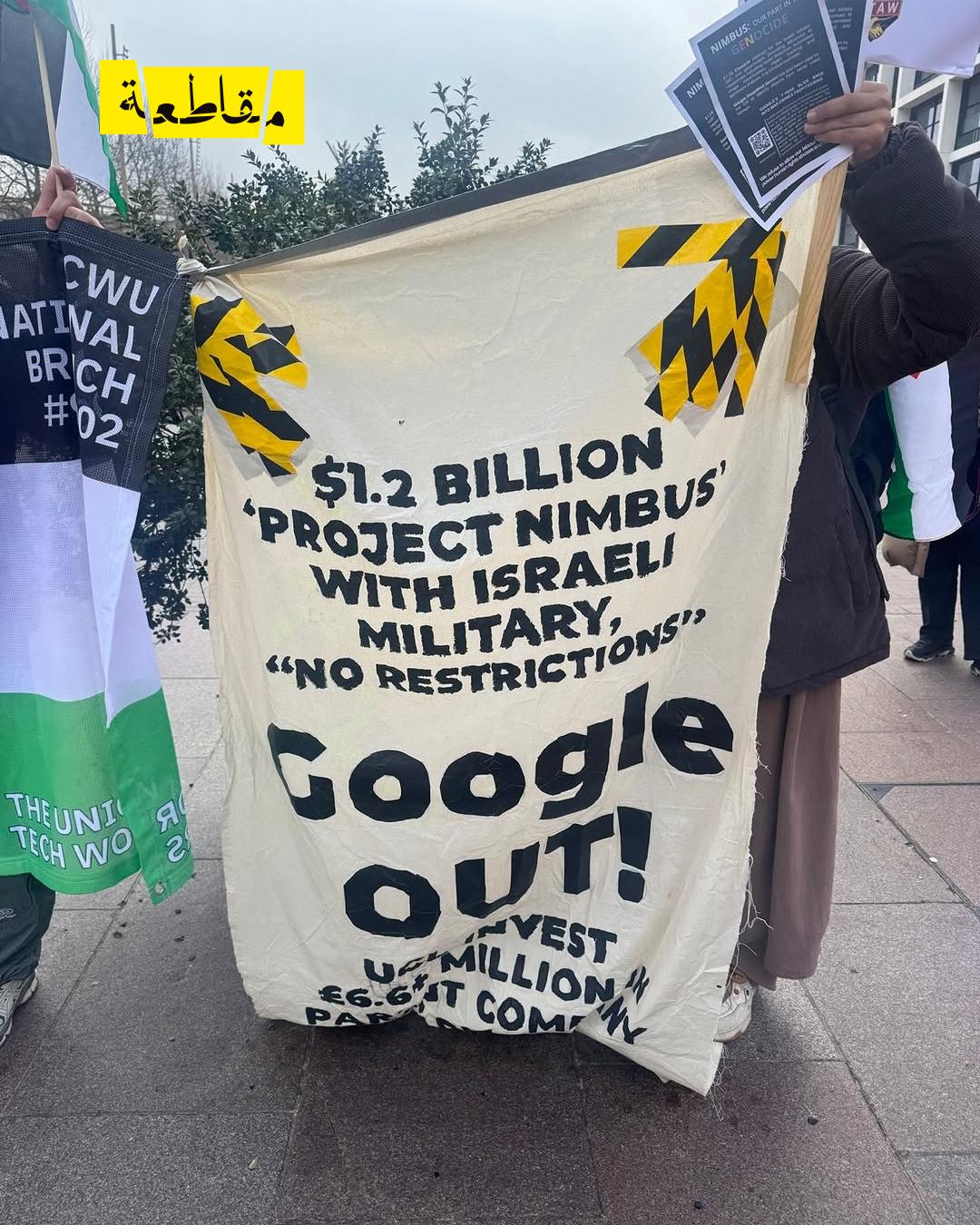 شاركت حركة الشباب الفلسطيني في بريطانيا في يوم عمل احتجاجي أمام مقر شركة غوغل، تأكيدا على مطالب الموظفين بإنهاء مشاركة غوغل في مشروع “نيمبوس”، وهو عقد خدمات سحابية بقيمة 1.2 مليار دولار موقّع بين غوغل وأمازون ويب سيرفيسز والحكومة والجيش الإسرائيليين.