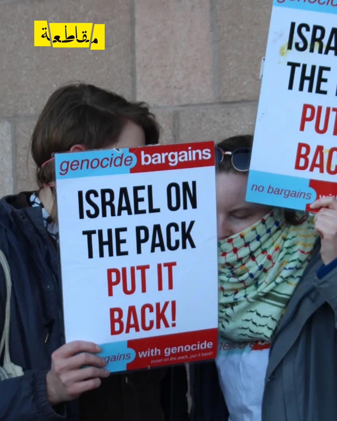 احتج نشطاء "منظمة الضمير" داخل أحد فروع شركة زارا في مدينة أبردين ، أسكتلندا، تنديدًا بتواطؤ الشركة في دعم الاحتلال، داعين المارة والزبائن إلى مقاطعة منتجاتها.