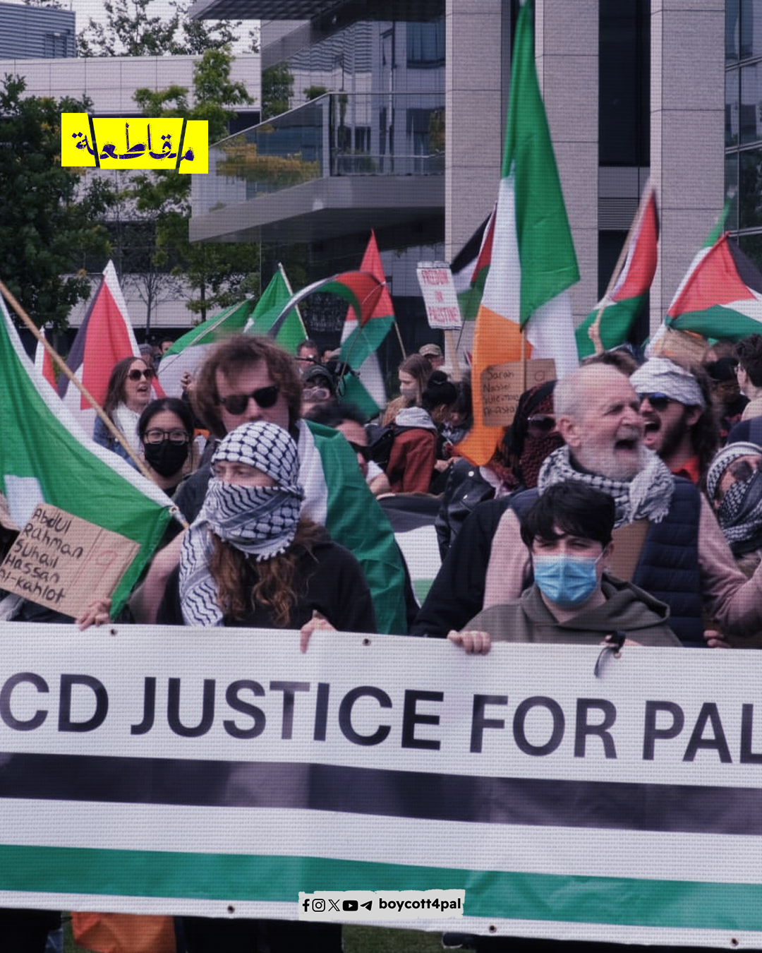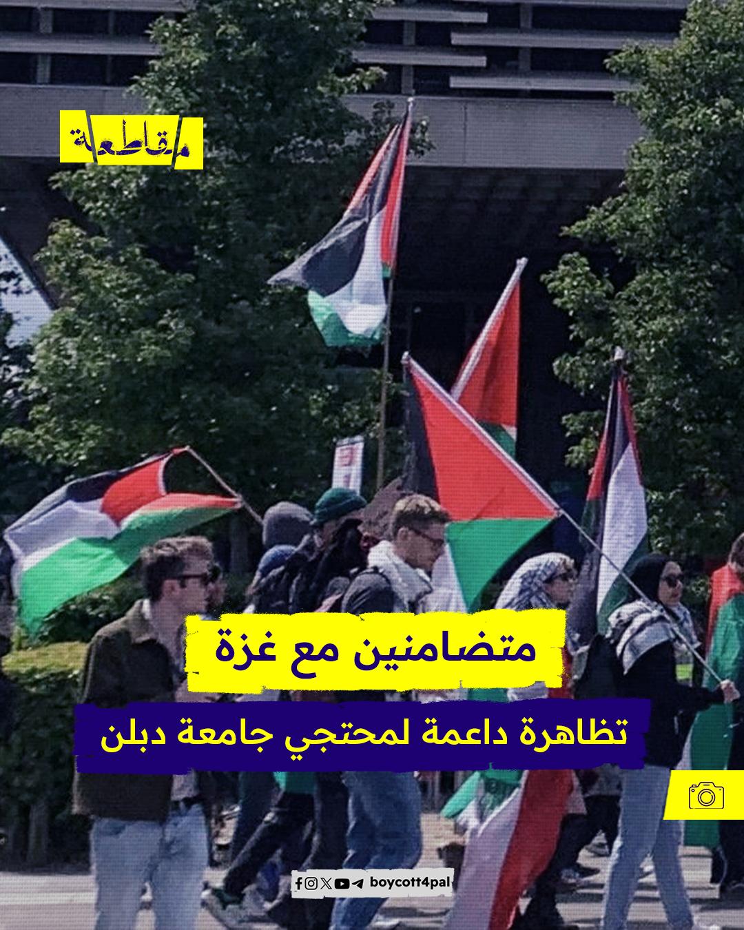 شهدت العاصمة الأيرلندية دبلن مظاهرة داعمة للطلاب في جامعة "كلية دبلن" المعتصمين تضامنًا مع الشعب الفلسطيني وللمطالبة بقطع العلاقات الأكاديمية، وذلك بعد الضغوط المتزايدة عليهم من إدارة الجامعة.
