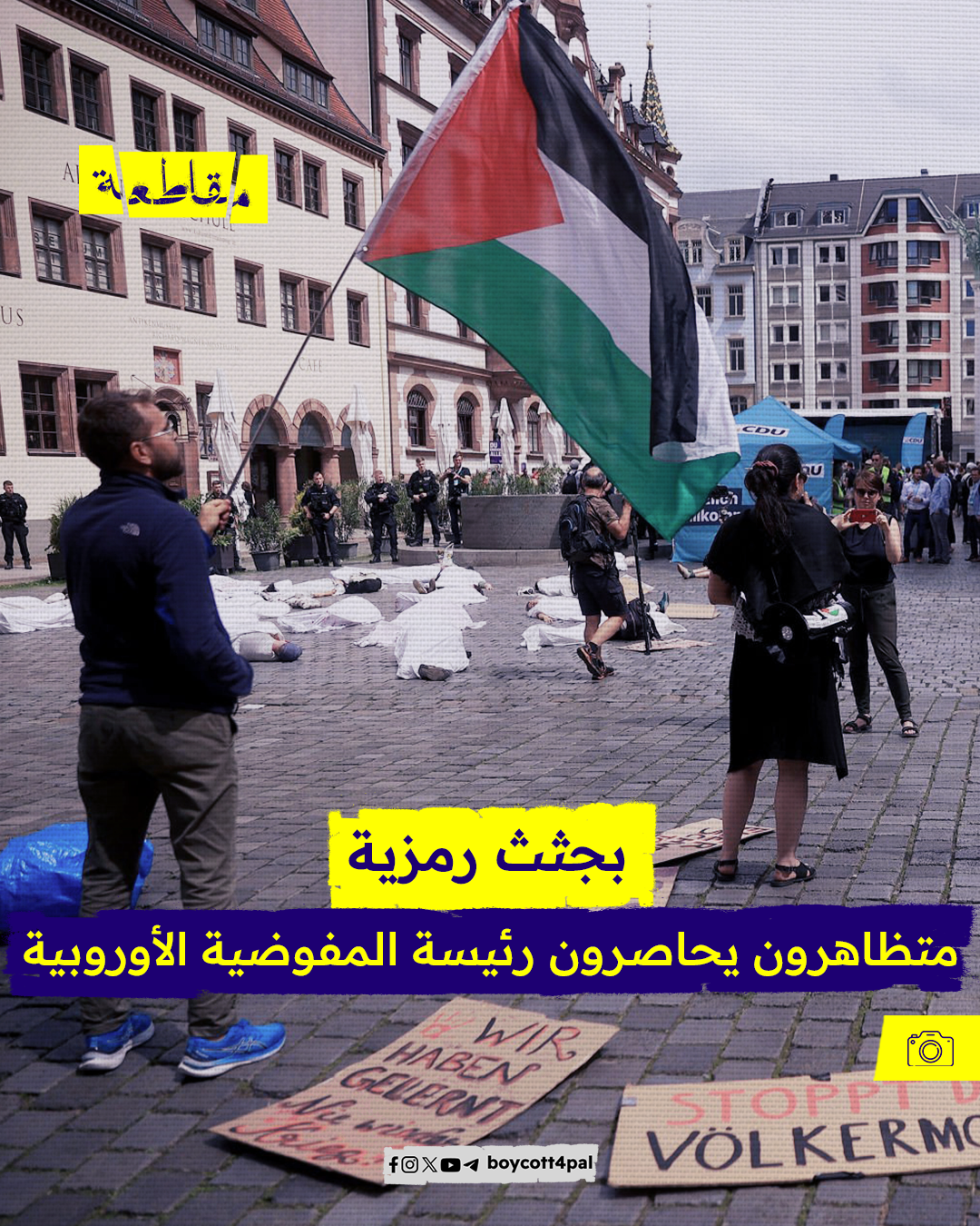 المتظاهرون في لايبزيغ، ألمانيا، هتفوا ضد رئيسة المفوضية الأوروبية أورسولا فون دير لاين خلال إطلاق الحملة الانتخابية الأوروبية التي ستجري من 6 إلى 9 يونيو، لدورها في السكوت عن الإبادة الجارية بغزة ودعمها الاحتلال الإسرائيلي.