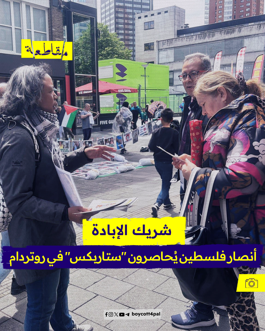 احتشد مؤيدون لفلسطين أمام فروع سلسلة مقاهي "ستاربكس" في مدينة روتردام الهولندية رفضًا لاستمرار الإبادة الجماعية بغزة، وعلق المتظاهرون الأعلام واللافتات الفلسطينية على الأرض أمام الفرع ووزعوا كتيبات للمارة عن مجازر الاحتلال الإسرائيلي في القطاع.