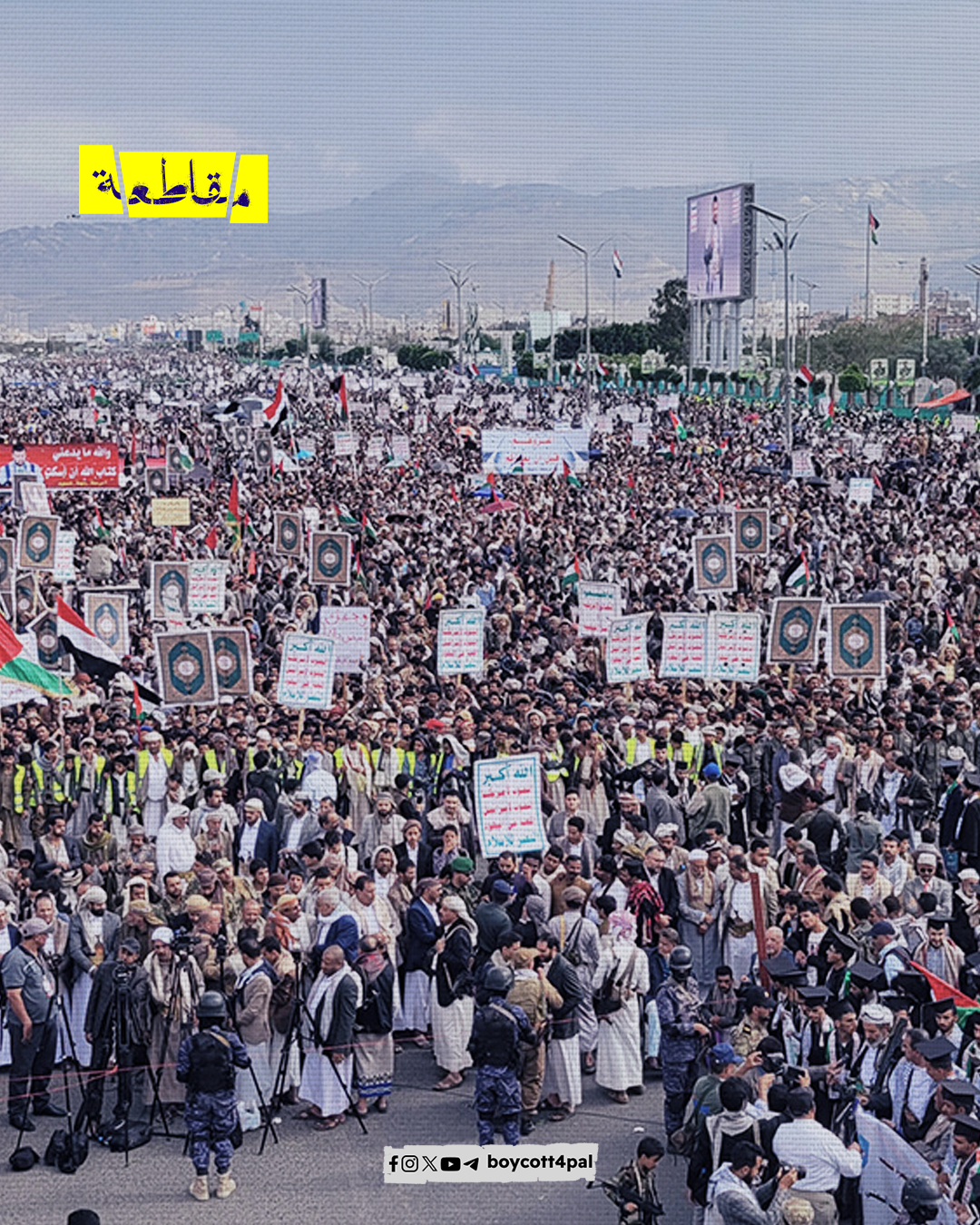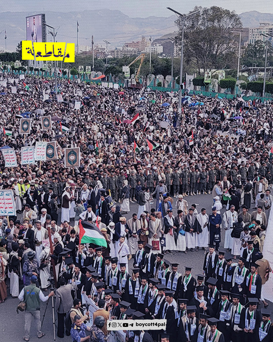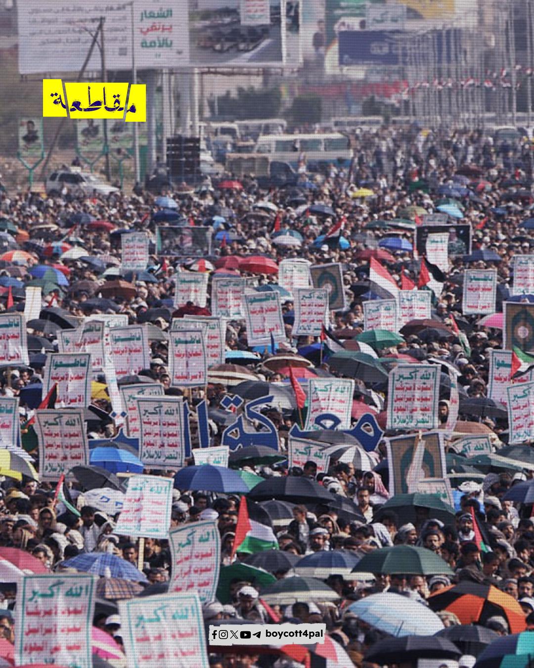 شهدت العاصمة اليمنية صنعاء ومحافظات أخرى خروج مسيرات مليونية جديدة نصرة للشعب الفلسطيني تحت عنوان "مع غزة جهاد مقدس ولا خطوط حمراء"، منددة باستمرار العدوان الإسرائيلي على قطاع غزة وبالتواطؤ الغربي، ومباركة للعمليات العسكرية البحرية التي تعيق مصالح الاحتلال ومعاونيه.