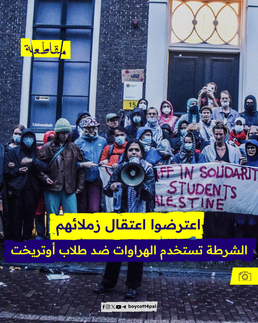 استخدمت الشرطة الهولندية في أوتريخت الهراوات والقوة ضد المتظاهرين المؤيدين للفلسطينيين الذين اعترضوا حافلة المدينة التي كانت تقل حوالي 40 ناشطًا تم توقيفهم بعد احتلالهم مبنى في جامعة أوتريخت الأربعاء وتم إخراجهم من المبنى من قبل الشرطة.